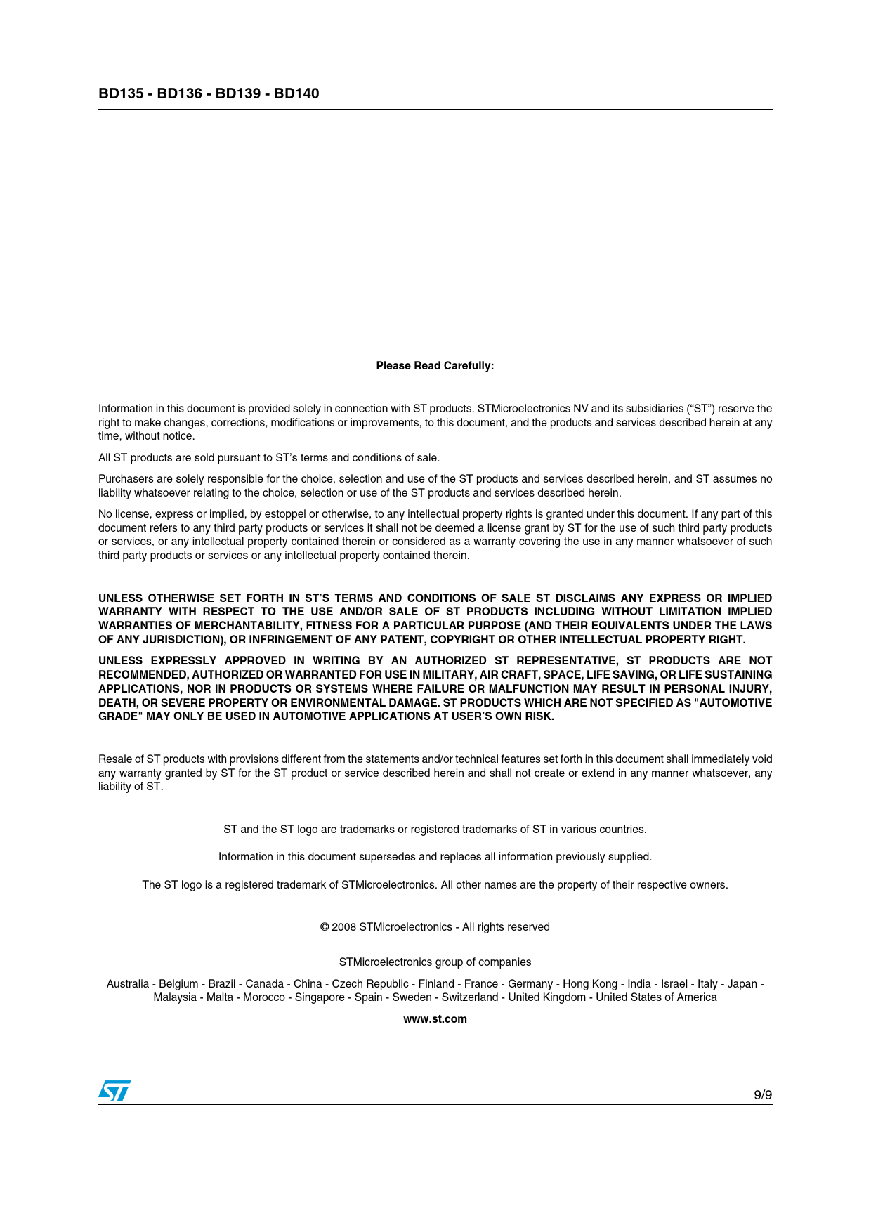 | Pages / Page | 9 / 9 — BD135 - BD136 - BD139 - BD140. Please Read Carefully: |