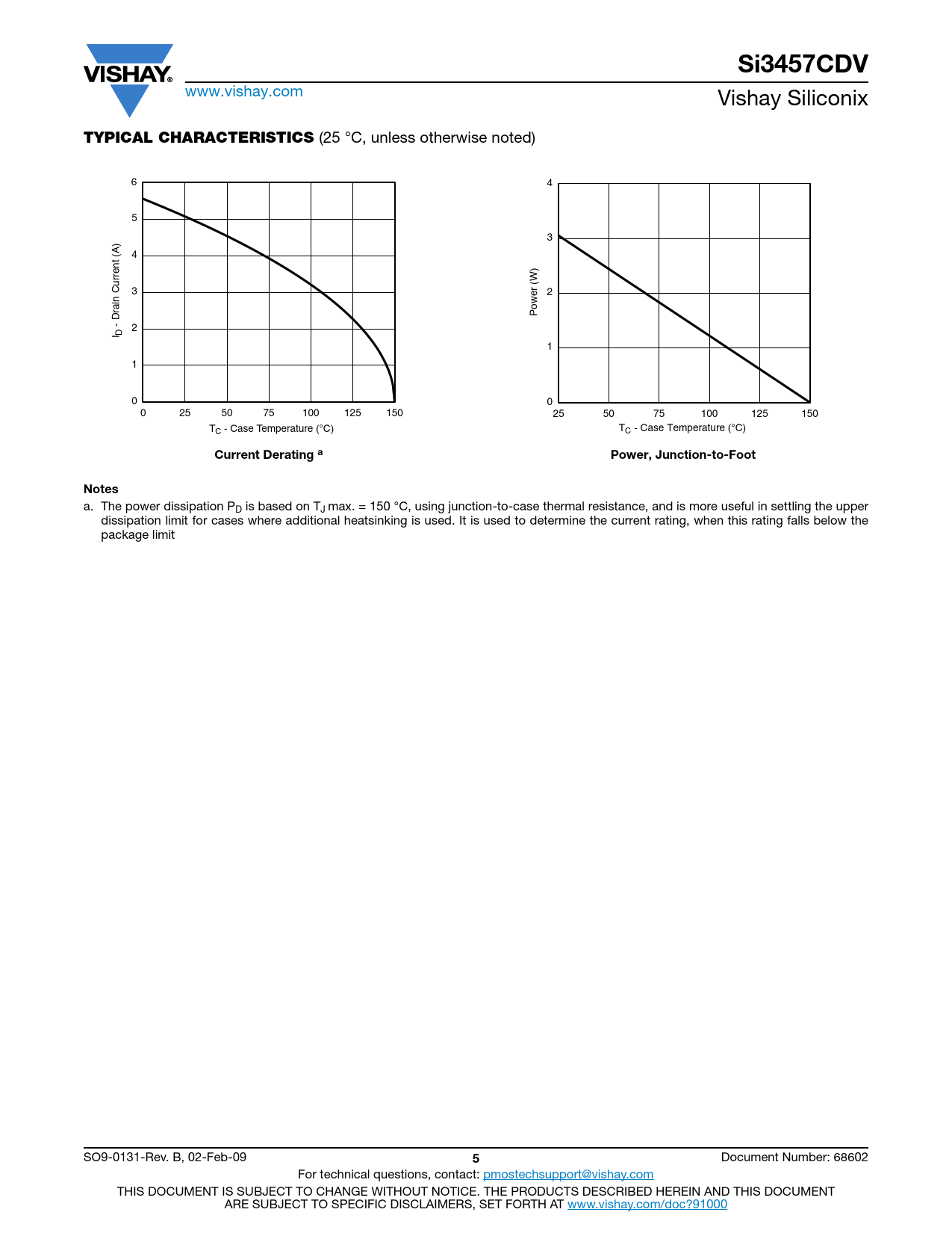 Si3457CDV. TYPICAL CHARACTERISTICS. Current Derating a. Power, Junction-to-Foot. Notes