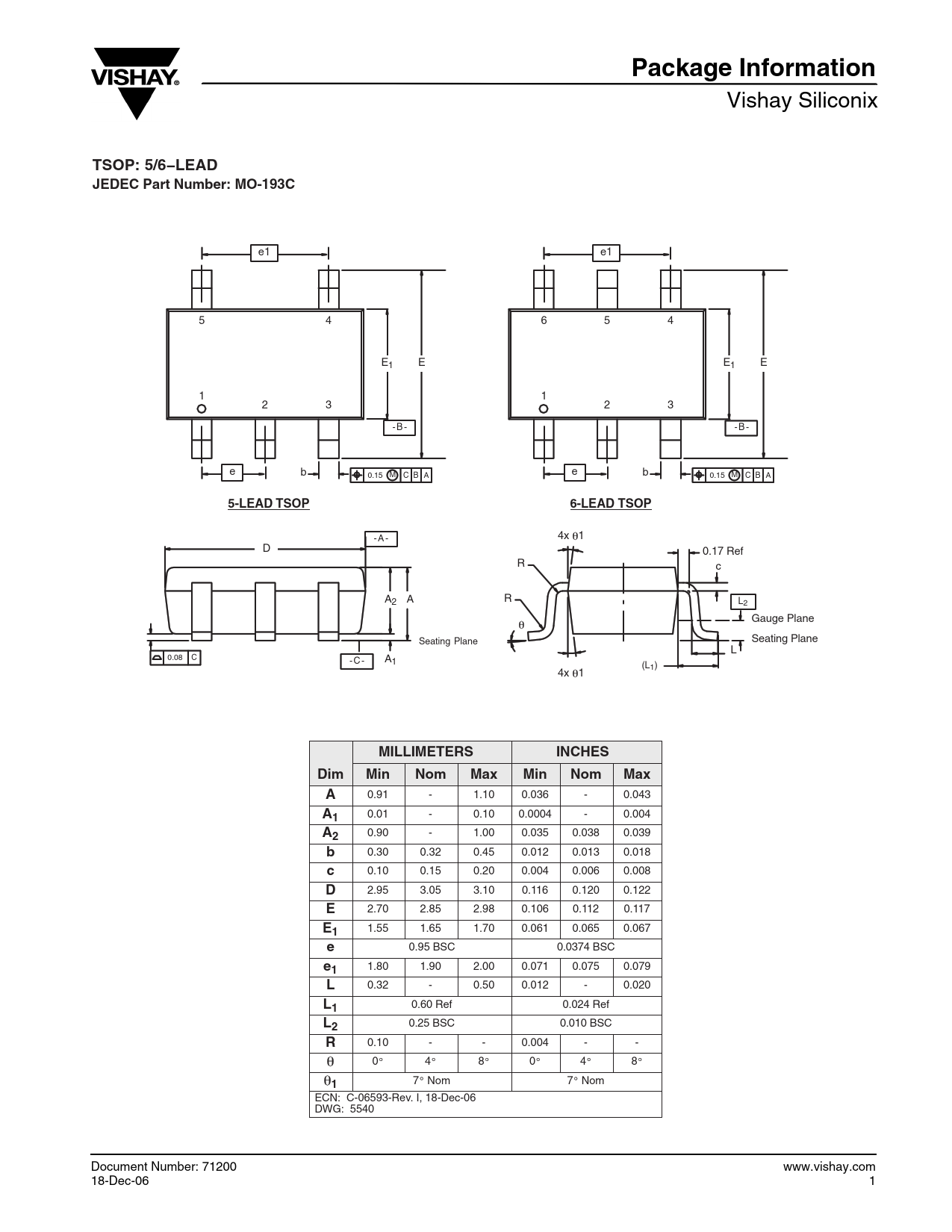 Package Information. TSOP: 5/6−LEAD JEDEC Part Number: MO-193C. 5-LEAD TSOP. 6-LEAD TSOP. MILLIMETERS. INCHES. Dim. Min. Nom. Max. A 1. A 2