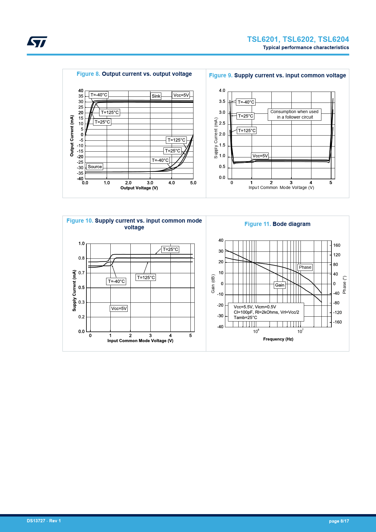 TSL6201, TSL6202, TSL6204 Typical performance characteristics Figure 8. Output current vs. output voltage Figure 9. Supply current vs. input common voltage
