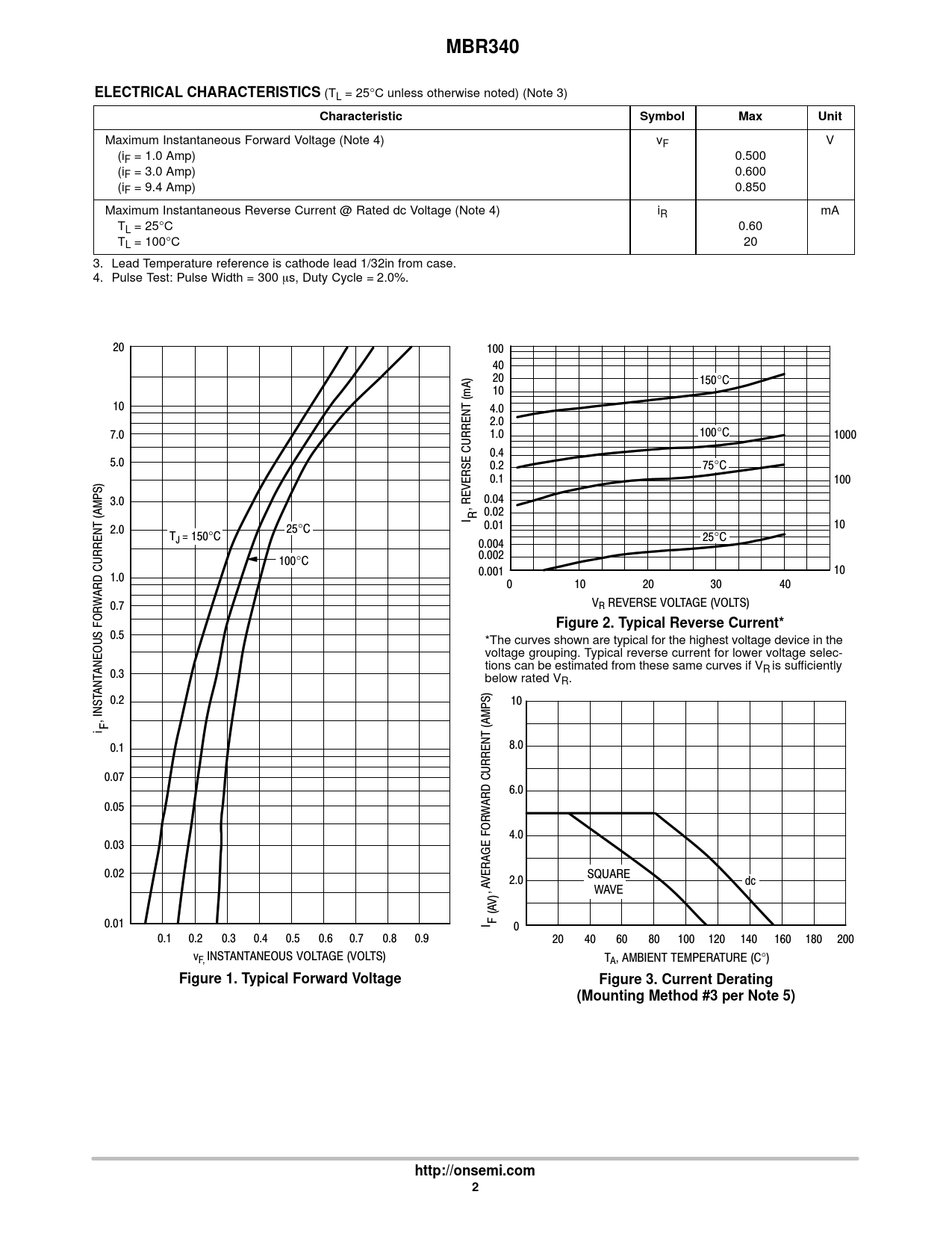 MBR340 ELECTRICAL CHARACTERISTICS Characteristic Symbol Max Unit Figure 2 Typical Reverse Current*