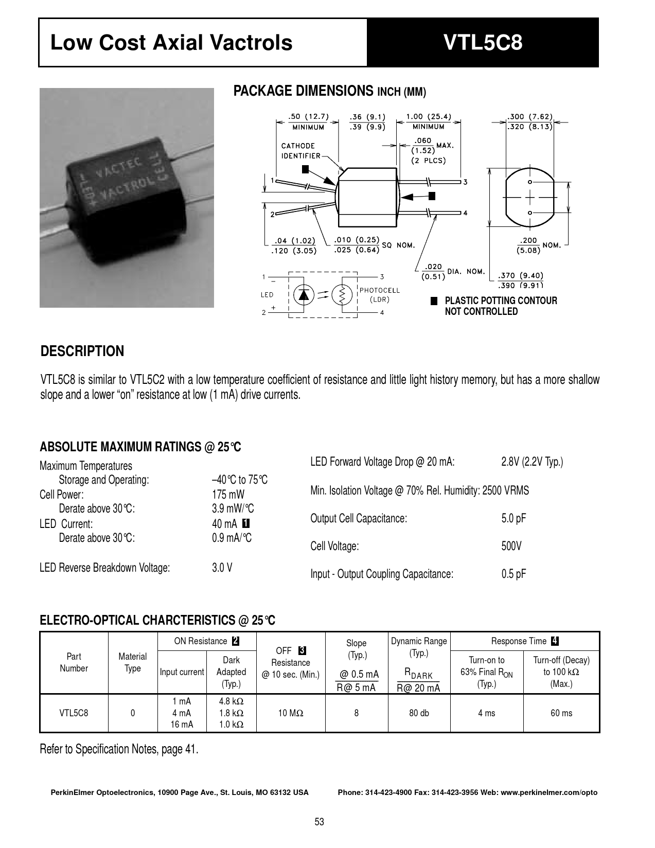 Low Cost Axial Vactrols. VTL5C8. PACKAGE DIMENSIONS INCH (MM). PLASTIC POTTING CONTOUR NOT CONTROLLED. DESCRIPTION