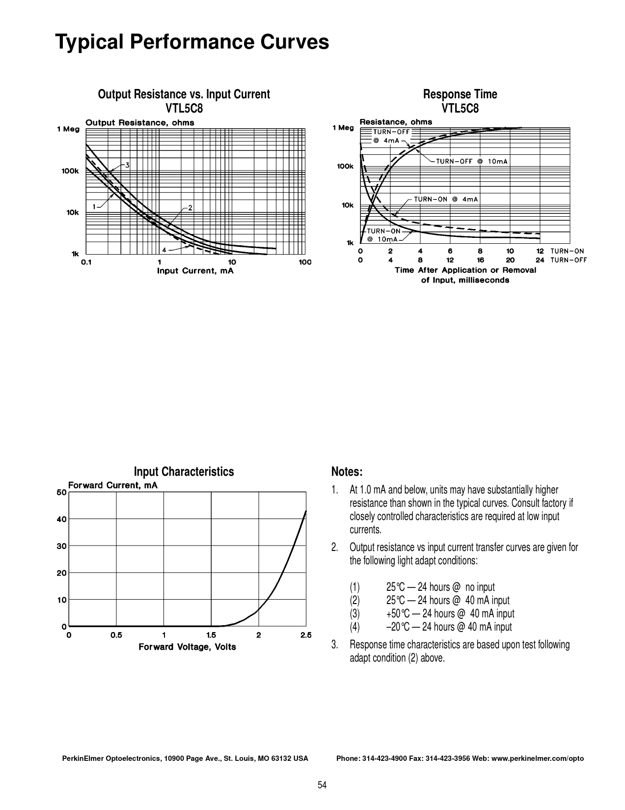 Typical Performance Curves Output Resistance vs Input Current Response Time VTL5C8 Input Characteristics Notes:
