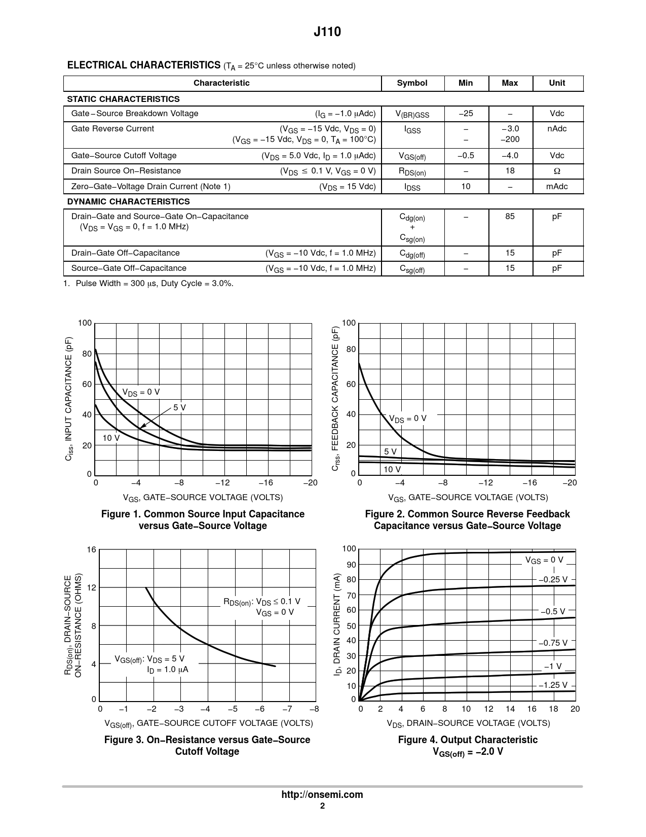J110. ELECTRICAL CHARACTERISTICS. Characteristic. Symbol. Min. Max. Unit. STATIC CHARACTERISTICS. DYNAMIC CHARACTERISTICS