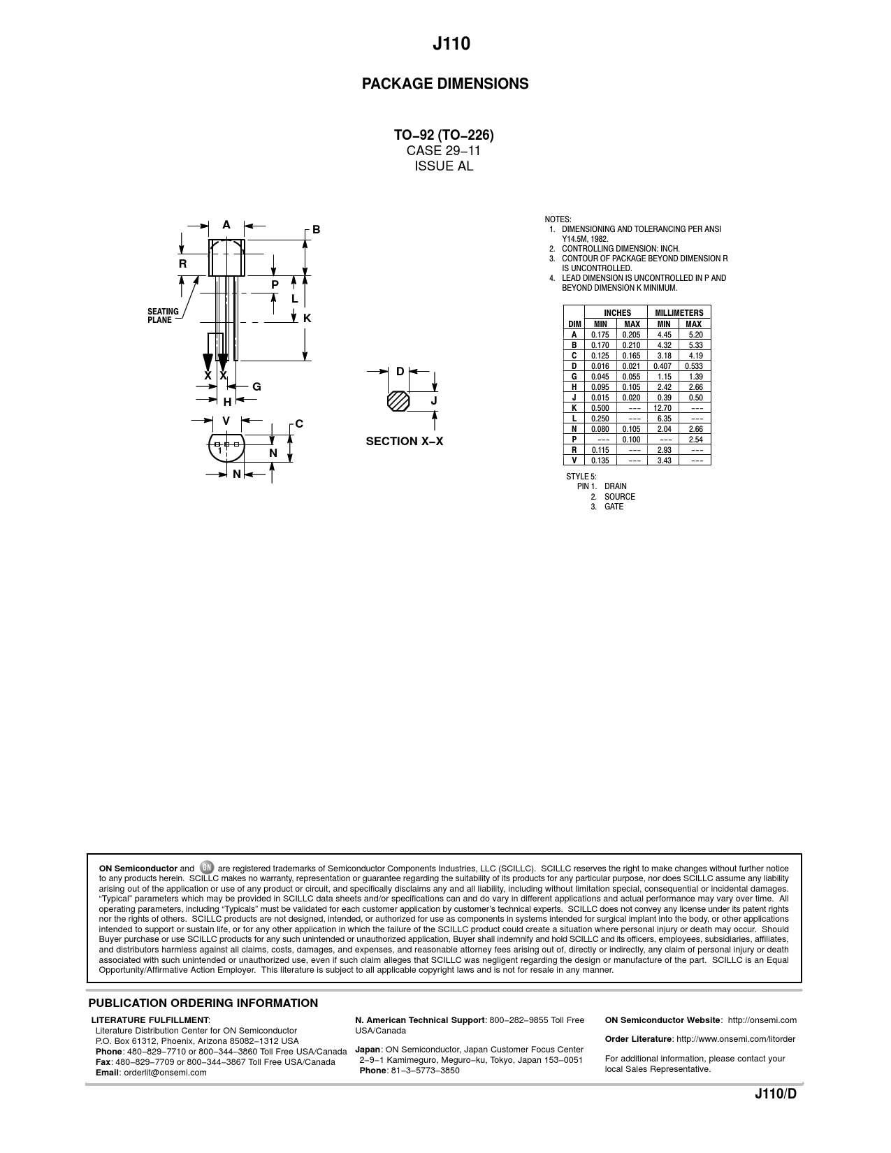 J110 PACKAGE DIMENSIONS TO−92 (TO−226) X X SECTION X−X ON Semiconductor PUBLICATION ORDERING INFORMATION
