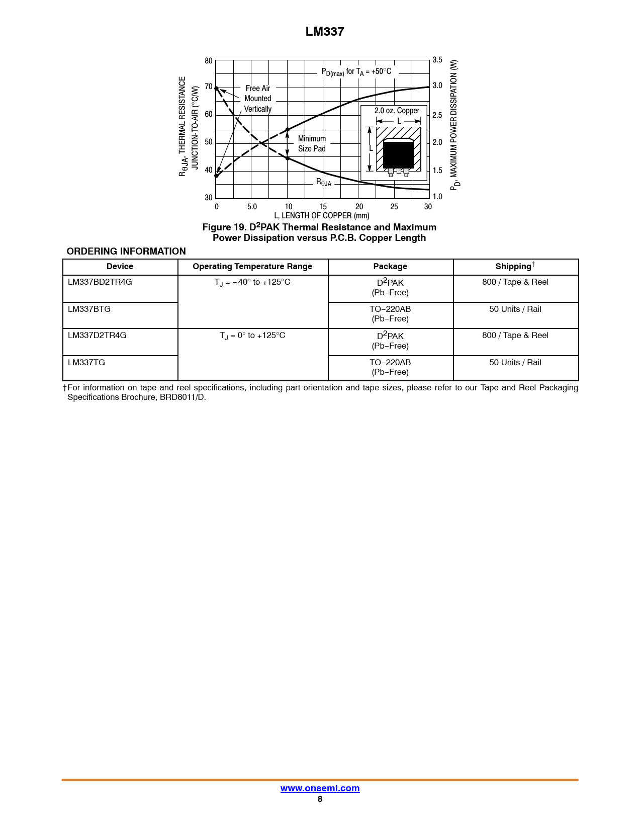 LM337. Figure 19. D2PAK Thermal Resistance and Maximum. Power Dissipation versus P.C.B. Copper Length. ORDERING INFORMATION