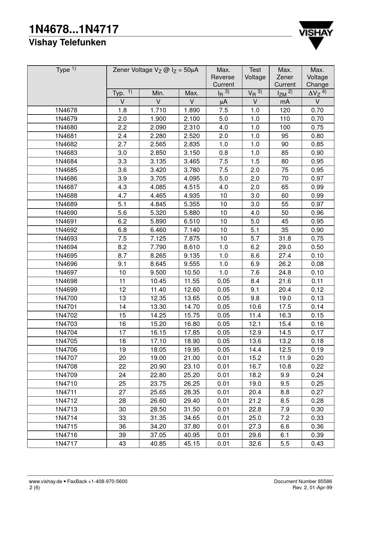 | Pages / Page | 6 / 2 — 1N4678...1N4717 Vishay Telefunken |