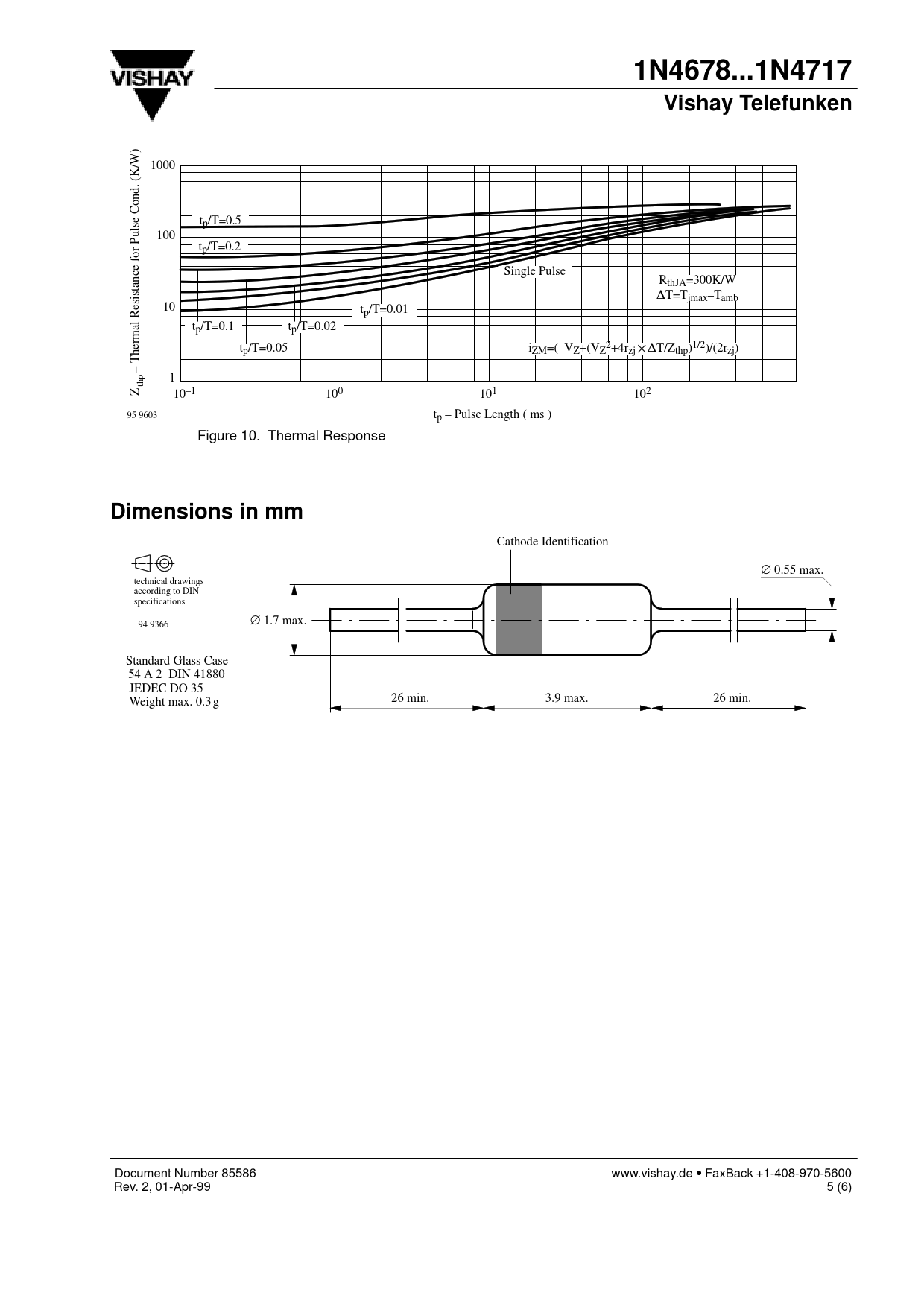 | Pages / Page | 6 / 5 — 1N4678...1N4717. Vishay Telefunken. Dimensions in mm |