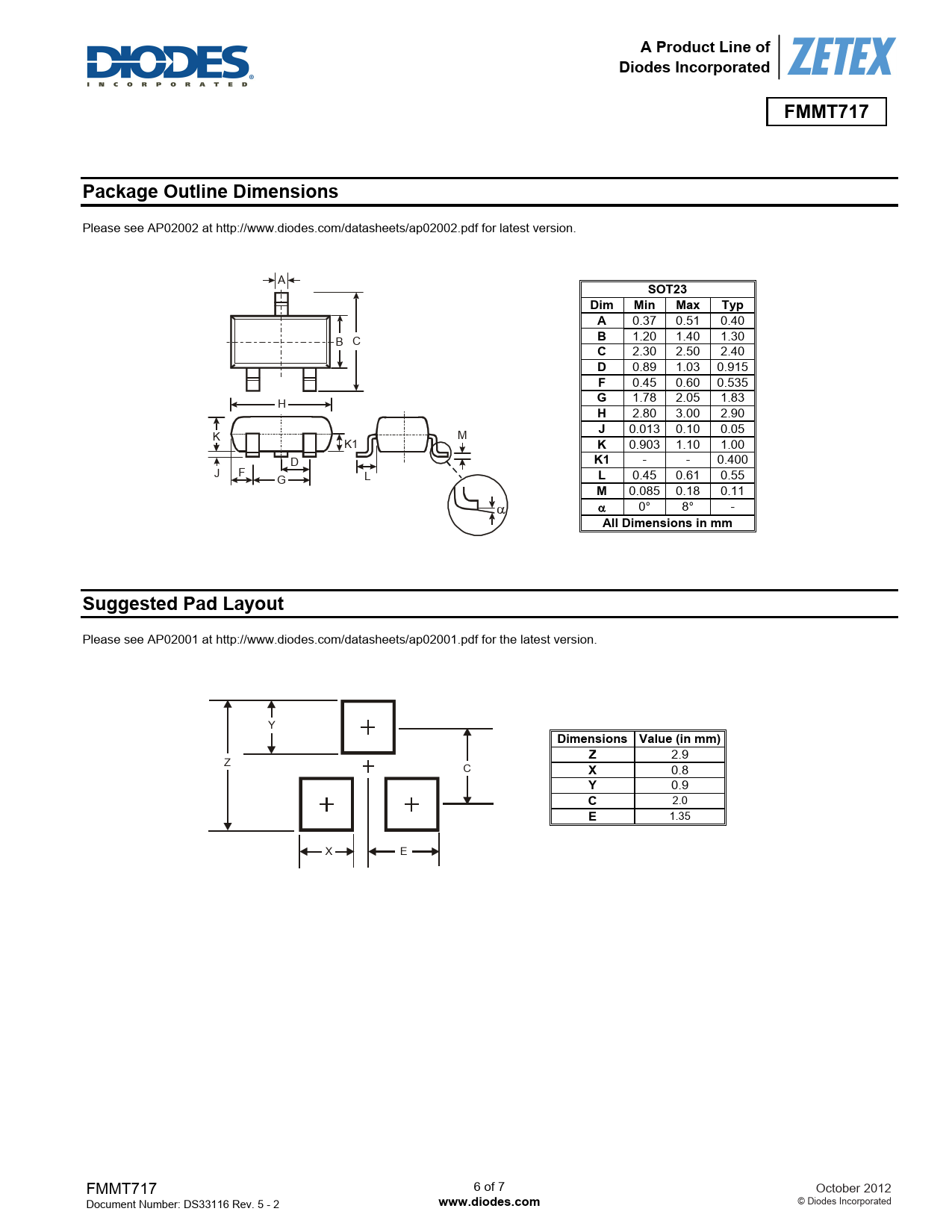 | Pages / Page | 7 / 6 — A Product Line of. Diodes Incorporated. FMMT717. Package Outline … |