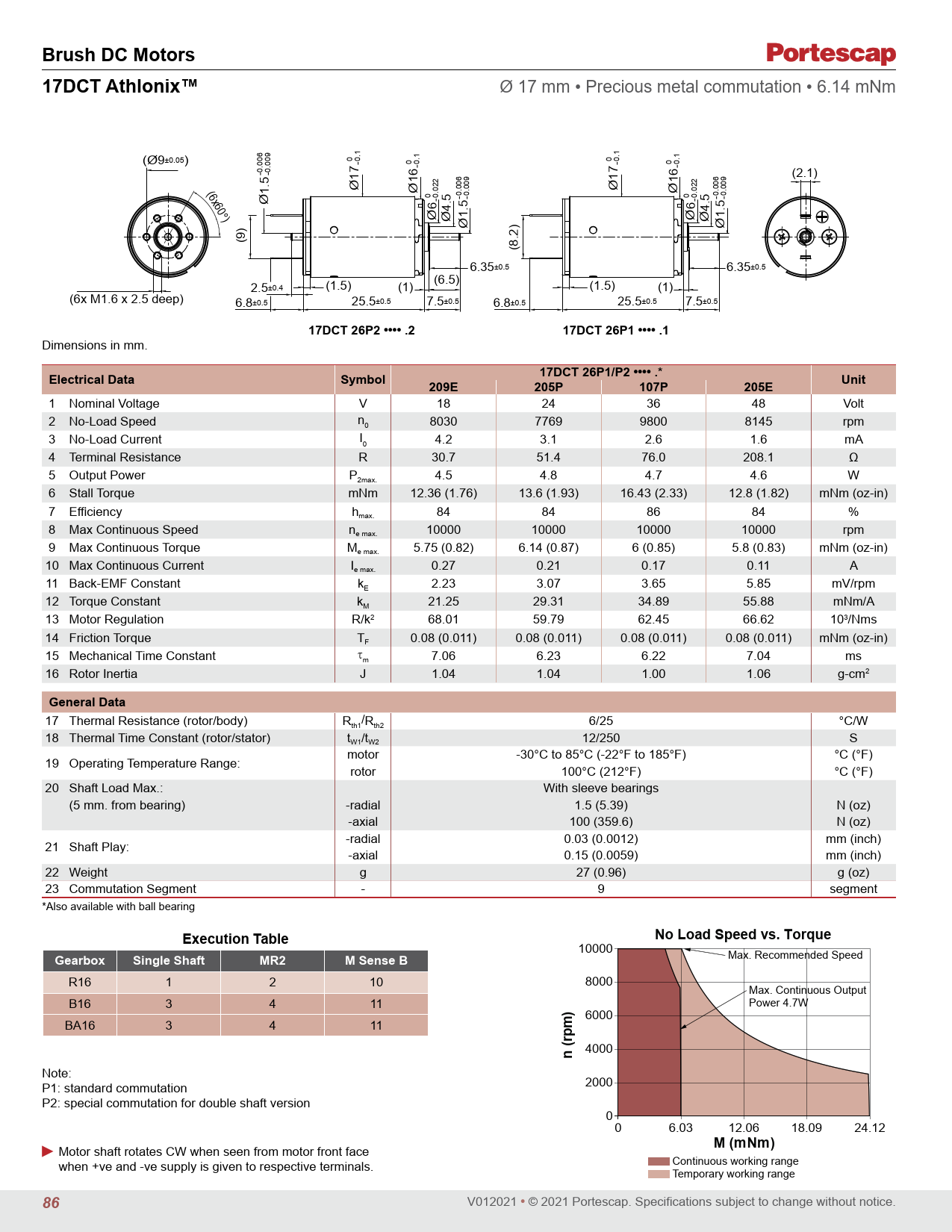 Brush DC Motors 17DCT Athlonix™. 17DCT 26P2 •••• .2. 17DCT 26P1 •••• .1. Electrical Data. Symbol. 17DCT 26P1/P2 •••• .*. Unit. 209E