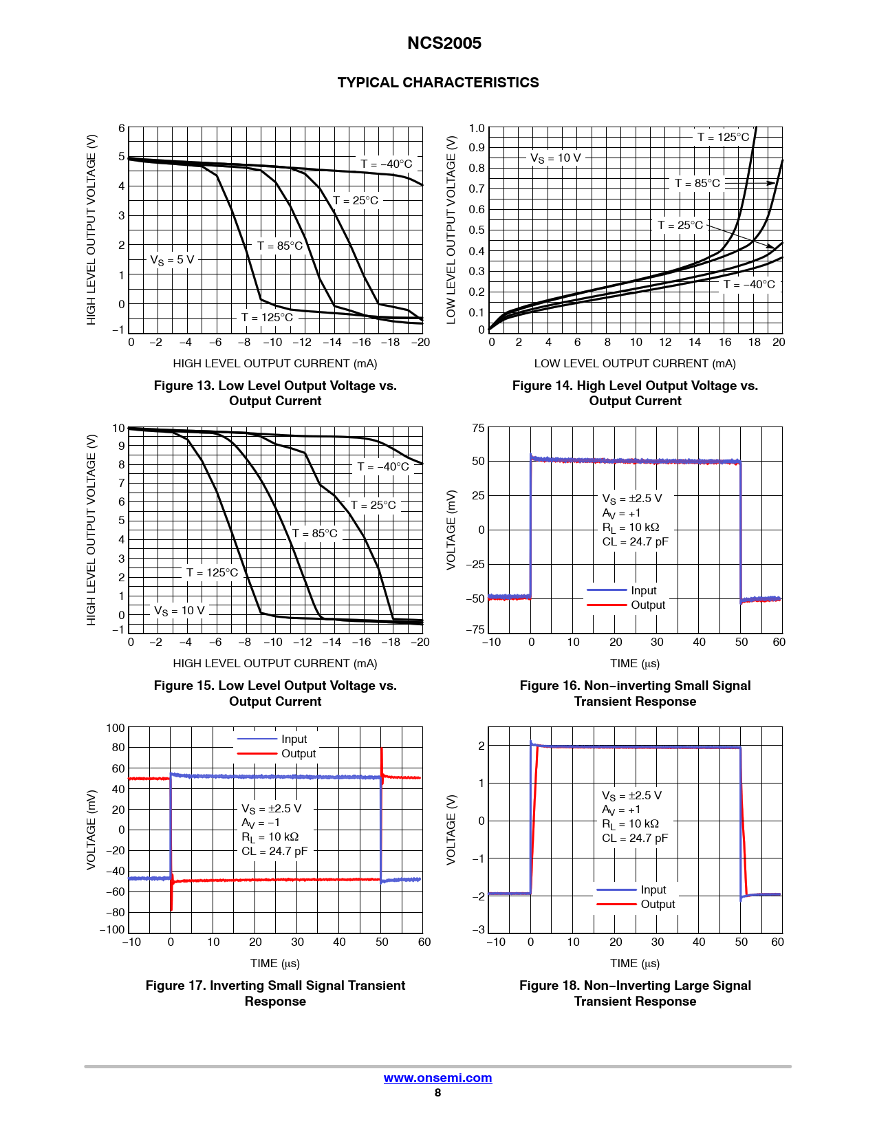 | Pages / Page | 11 / 8 — NCS2005. TYPICAL CHARACTERISTICS. Figure 13. Low Level Output Voltage vs. … |