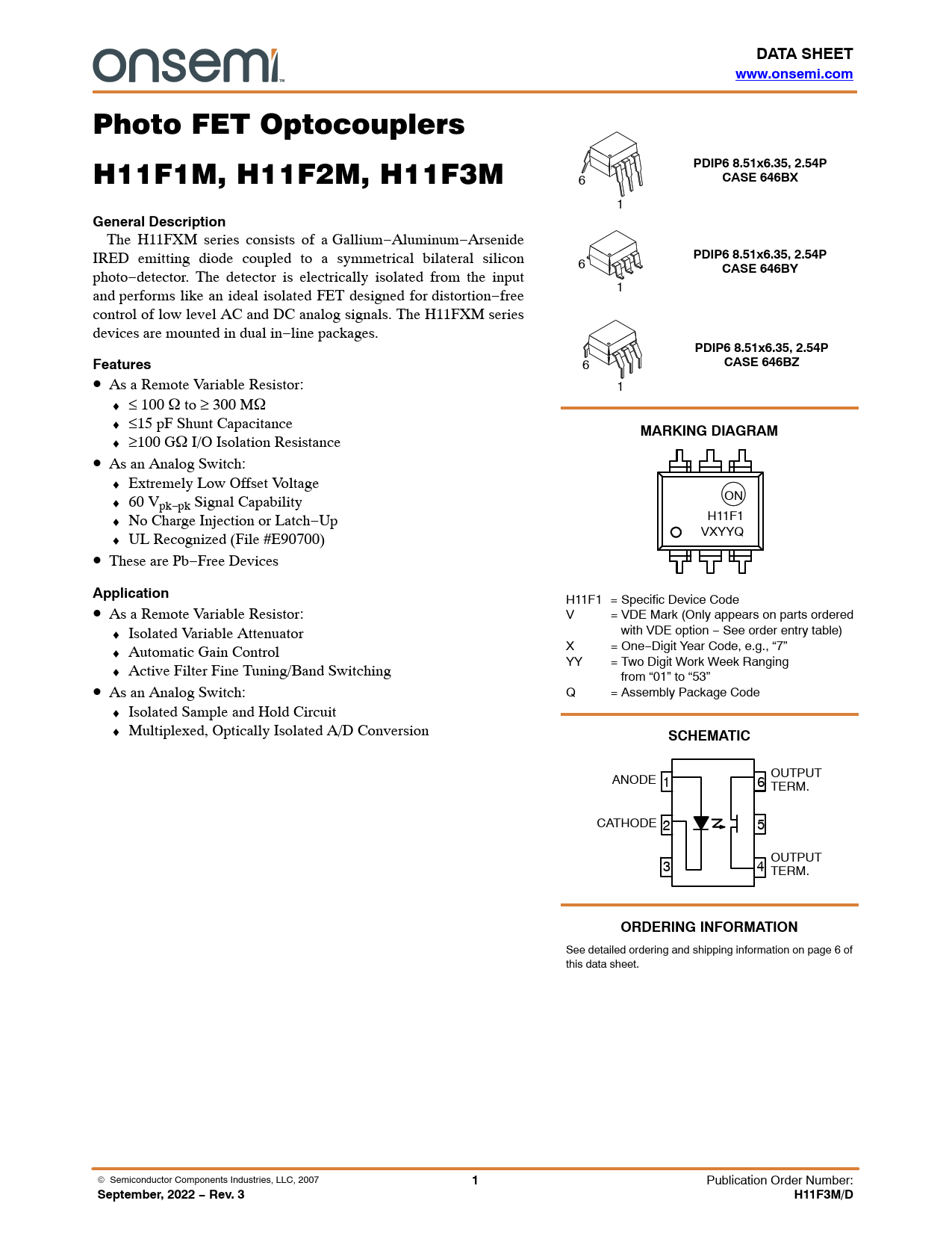 Datasheet H11F1M, H11F2M, H11F3M (ON Semiconductor)