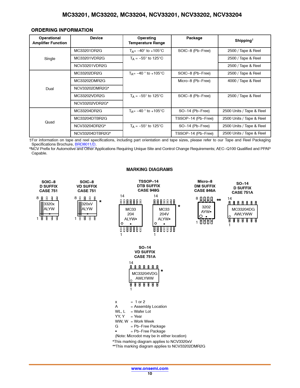 MC33201, MC33202, MC33204, NCV33201, NCV33202, NCV33204 ORDERING INFORMATION Operational Device Operating Package Amplifier Function Temperature Range Shipping