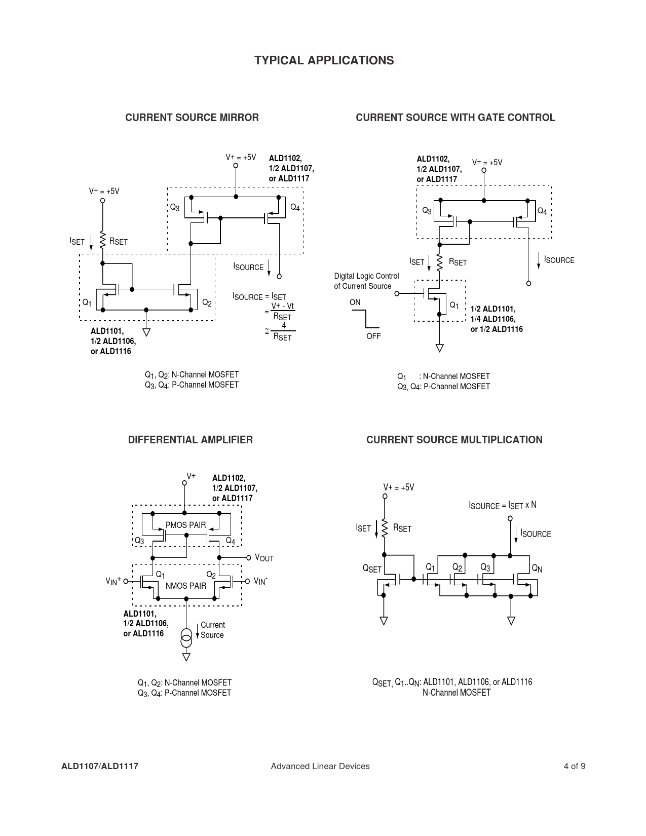 TYPICAL APPLICATIONS. CURRENT SOURCE MIRROR. CURRENT SOURCE WITH GATE CONTROL. ALD1102,. 1/2 ALD1107,. or ALD1117. 1/2 ALD1101,