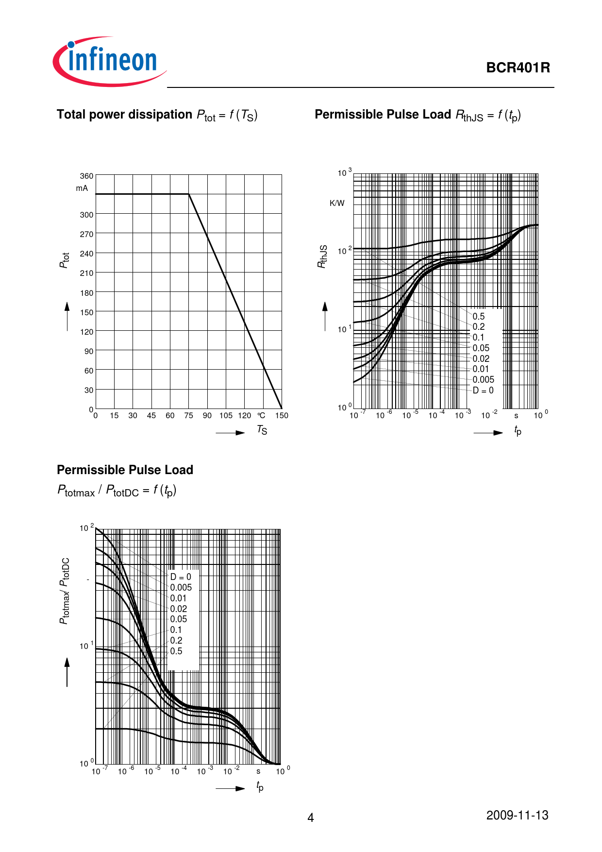 | Pages / Page | 8 / 4 — BCR401R. Total power dissipation. Permissible Pulse Load |