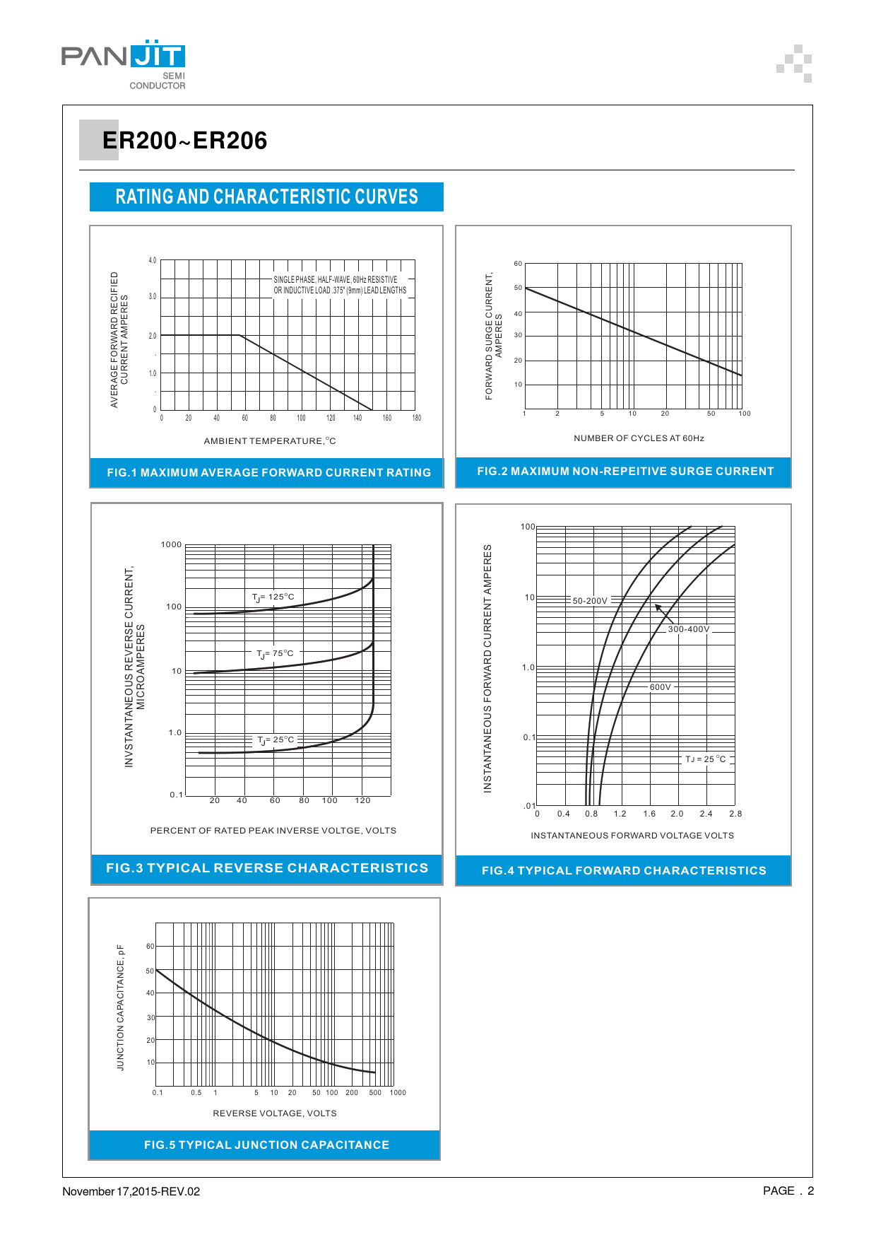 10 0.1 0.5 1 5 10 20 50 100 200 500 1000 REVERSE VOLTAGE, VOLTS FIG.5 TYPICAL JUNCTION CAPACITANCE November 17,2015-REV.02 PAGE . 2