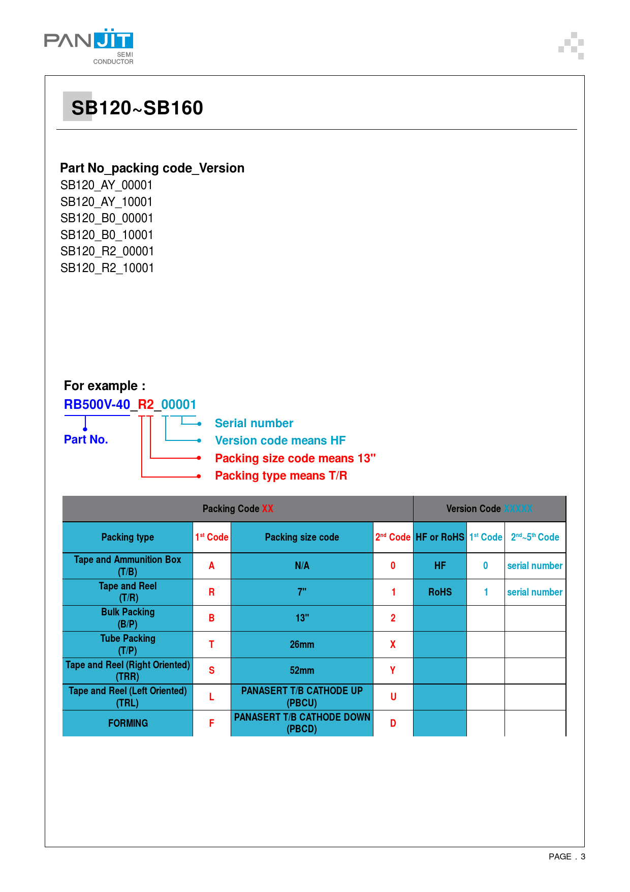 Pages / Page4 / 3 — SB120~SB160. Part No_packing code_Version. SB120_AY_00001. …