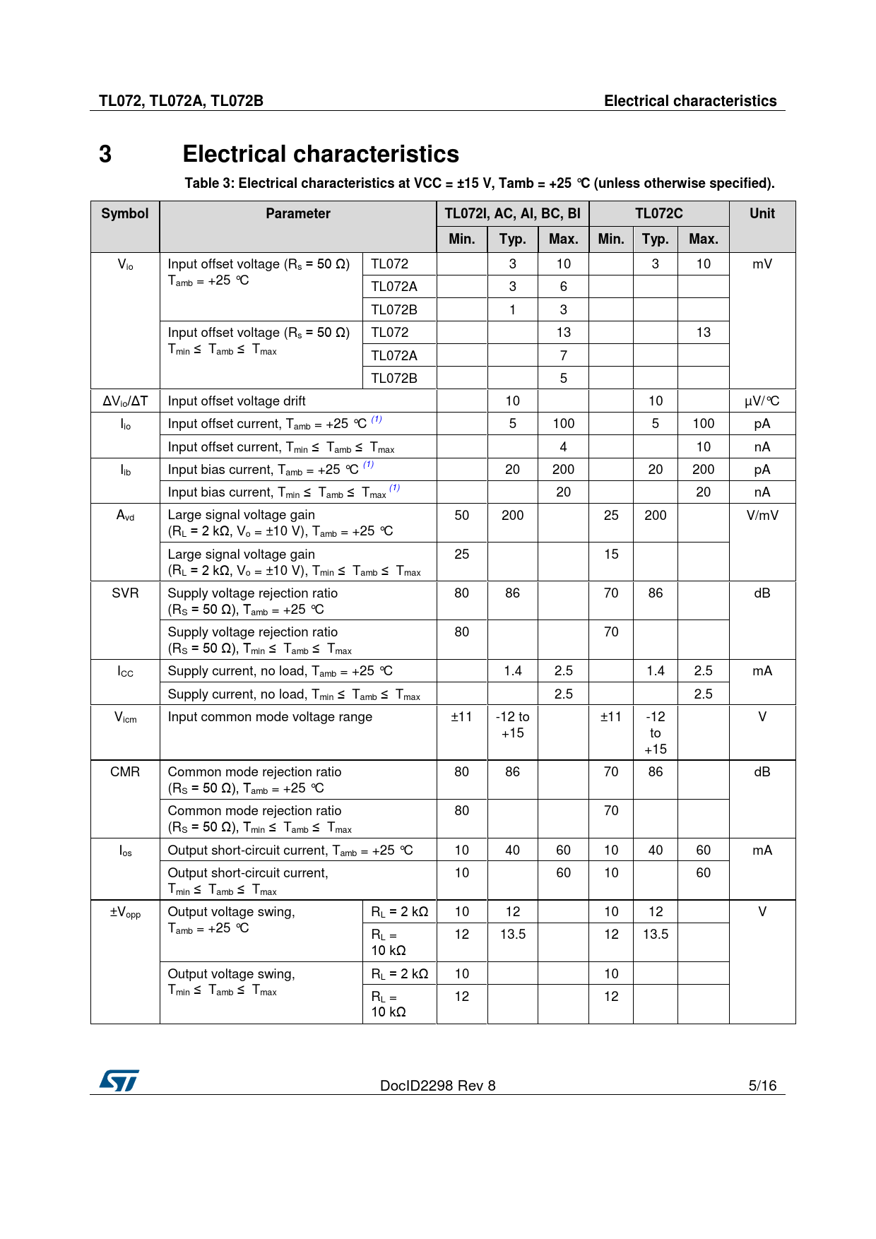 Datasheet TL072, TL072A, TL072B (STMicroelectronics) - 5