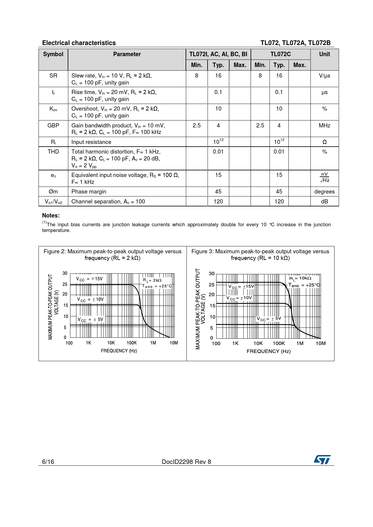 Datasheet TL072, TL072A, TL072B (STMicroelectronics) - 6