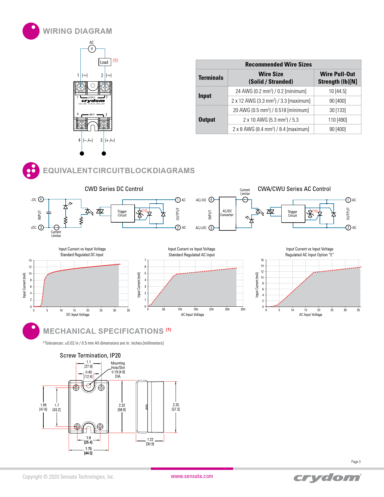 WIRING DIAGRAM. Recommended Wire Sizes. Terminals. Wire Size. Wire Pull-Out. (Solid / Stranded). Strength (lb)[N]. Input. Output