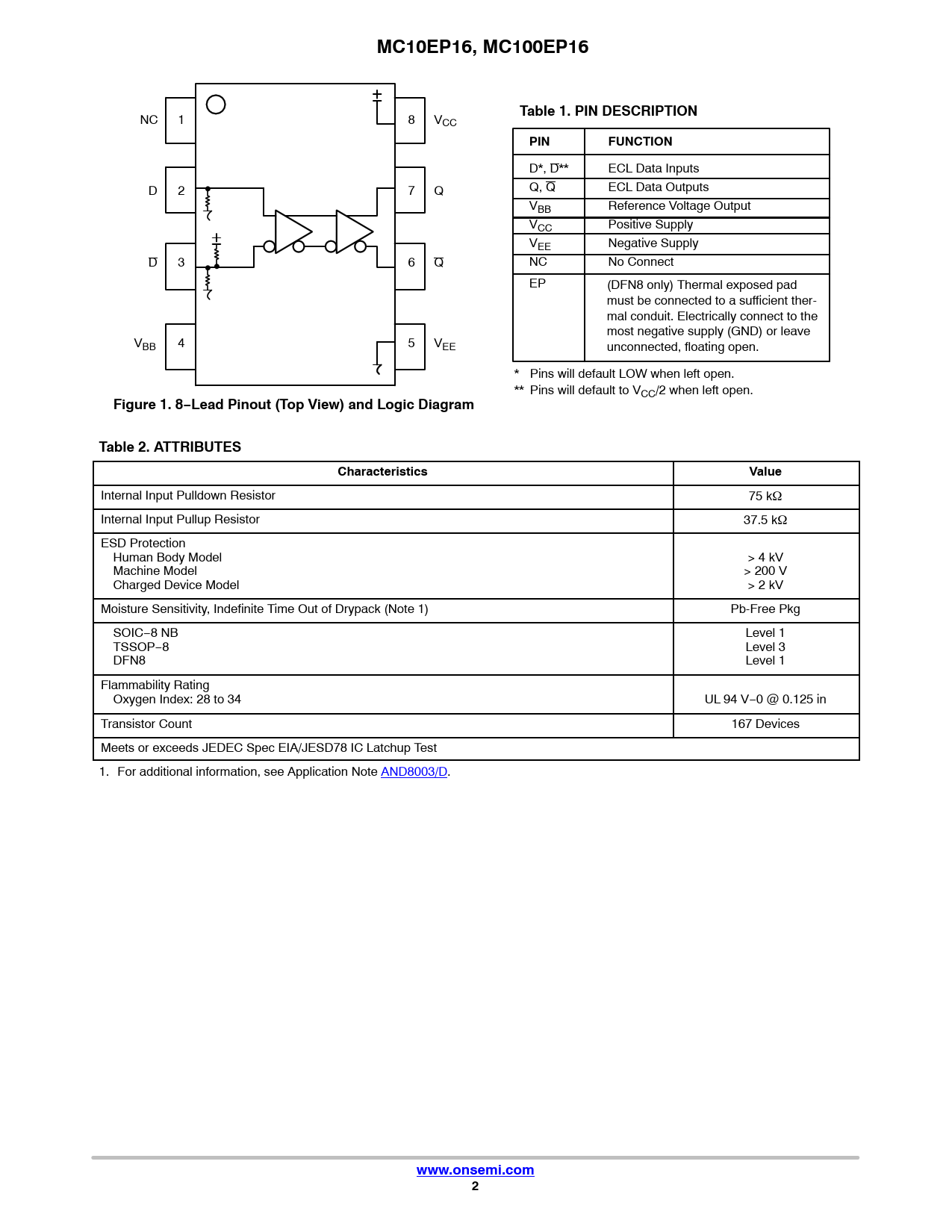 Datasheet MC10EP16, MC100EP16 (ON Semiconductor) - 2