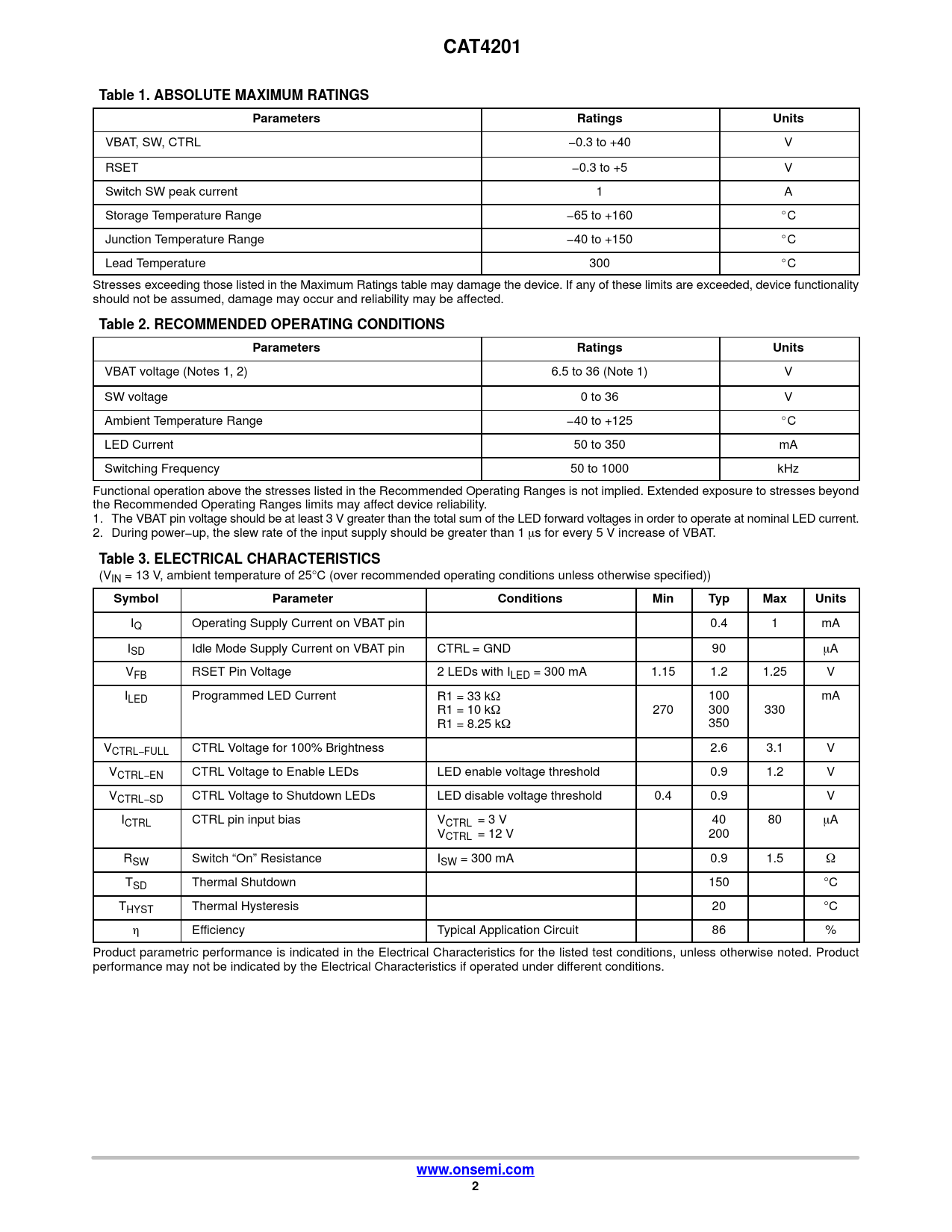 Datasheet CAT4201 (ON Semiconductor) - 2