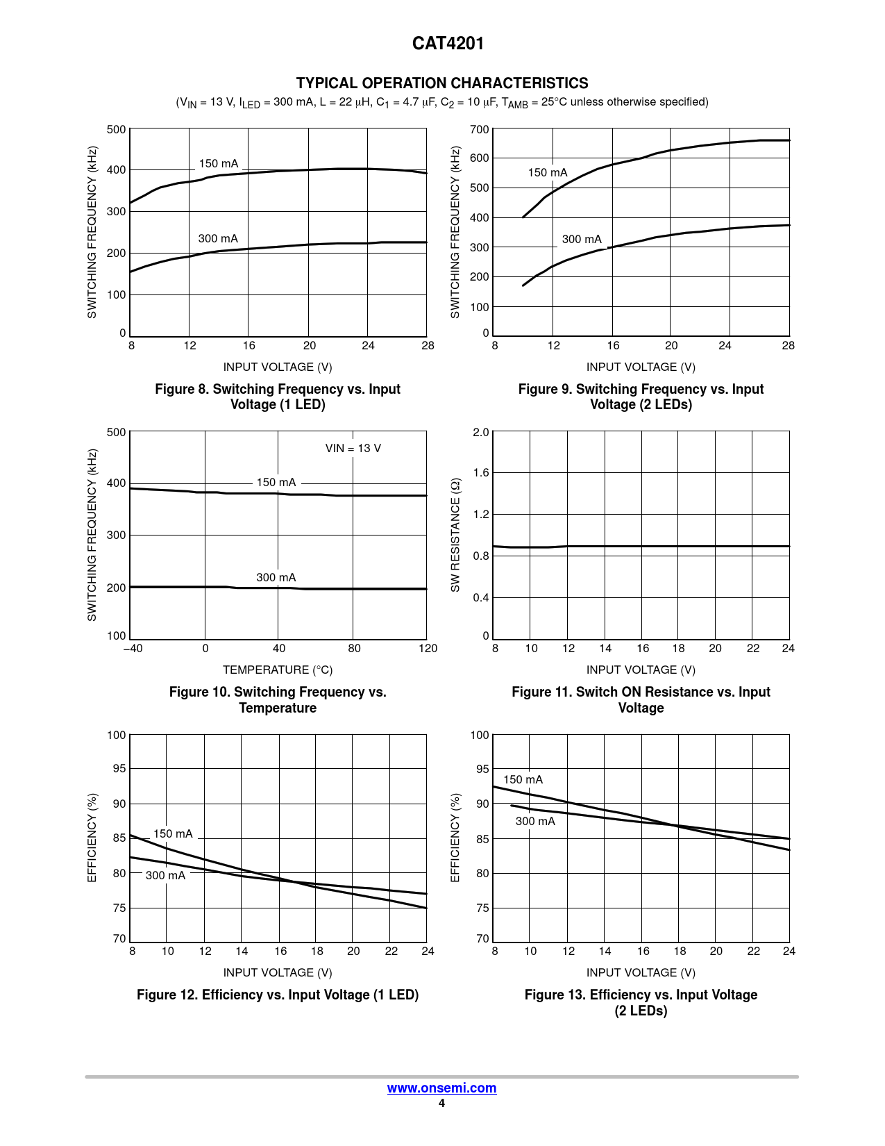| Pages / Page | 13 / 4 — CAT4201. TYPICAL OPERATION CHARACTERISTICS. Figure 8. Switching Frequency … |