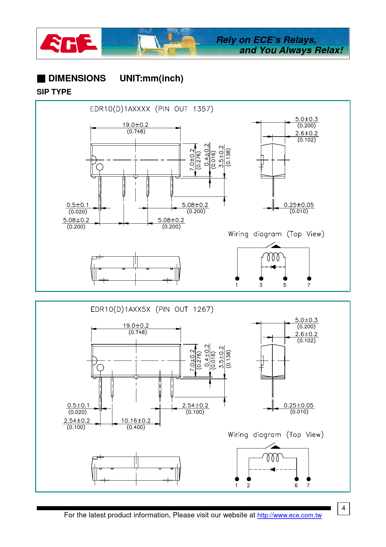 Rely on ECE’s Relays,. and You Always Relax!. DIMENSIONS UNIT:mm(inch) SIP TYPE