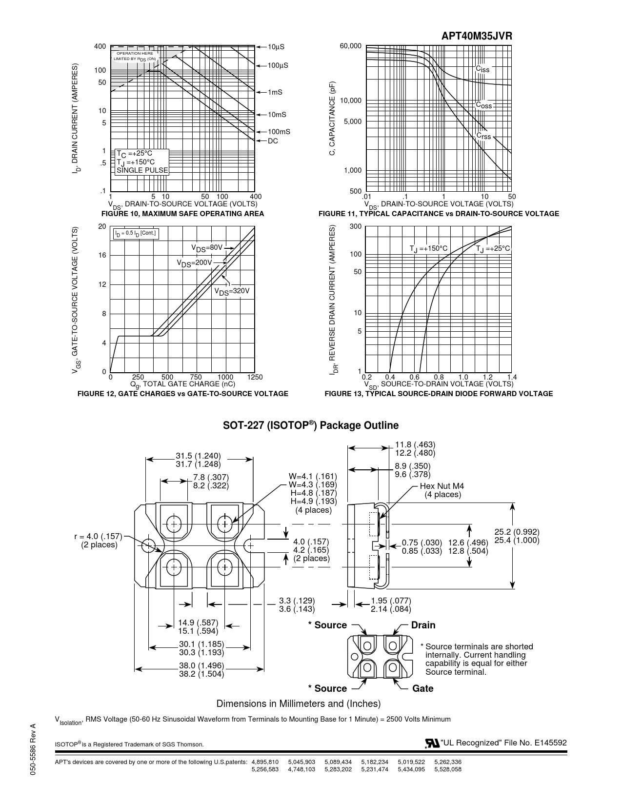 Dimensions in Millimeters and (Inches) V , RMS Voltage (50-60 Hz Sinusoidal Waveform from Terminals to Mounting Base for 1 Minute) = 2500 Volts Minimum Isolation ISOTOP® is a Registered Trademark of SGS Thomson. "UL Recognized" File No. E145592 APT's devices are covered by one or more of the following U.S.patents: 4,895,810 5,045,903 5,089,434 5,182,234 5,019,522 5,262,336 5,256,583 4,748,103 5,283,202 5,231,474 5,434,095 5,528,058 050-5586 Rev A