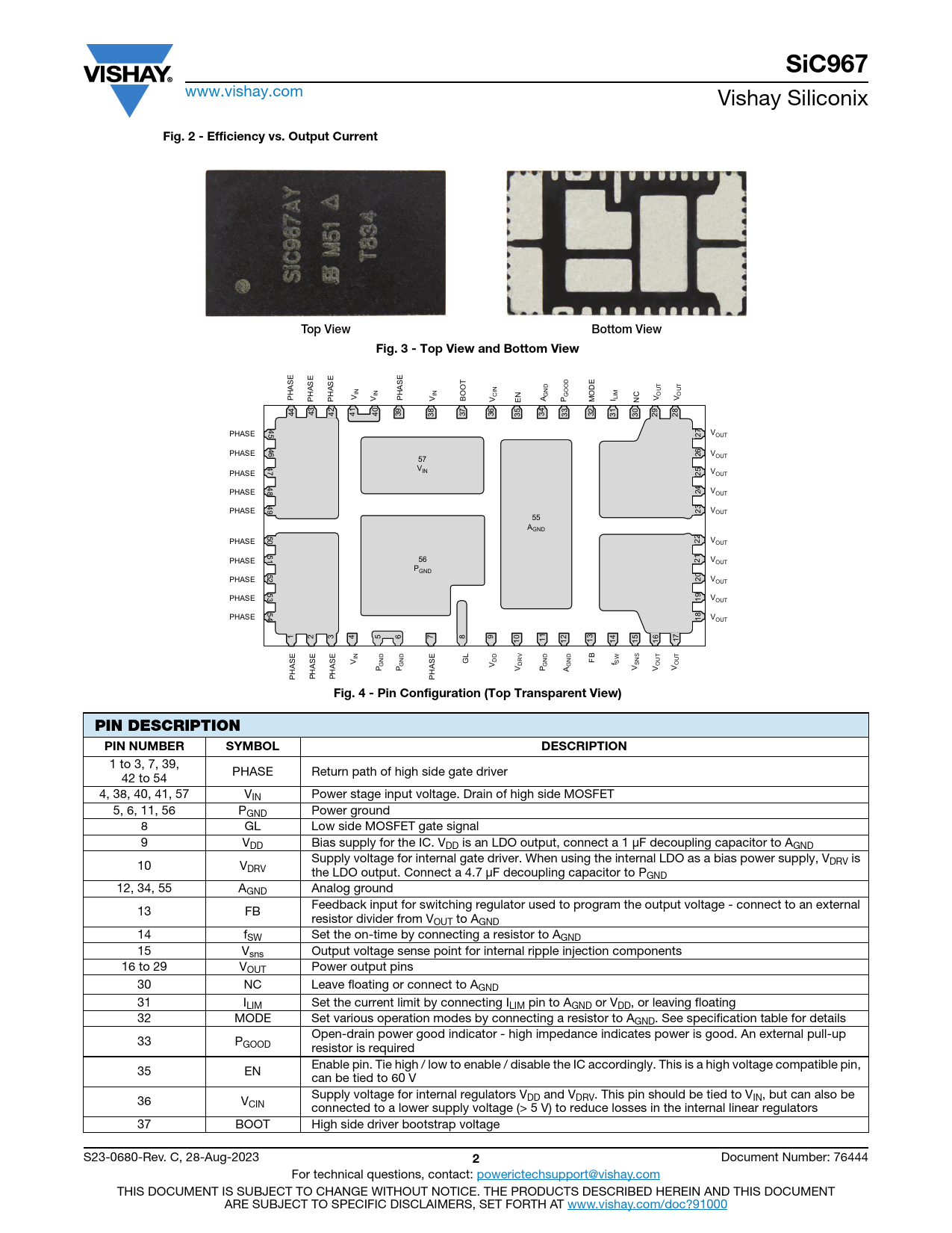 SiC967. Fig. 2 - Efficiency vs. Output Current. Top View. Bottom View. Fig. 3 - Top View and Bottom View