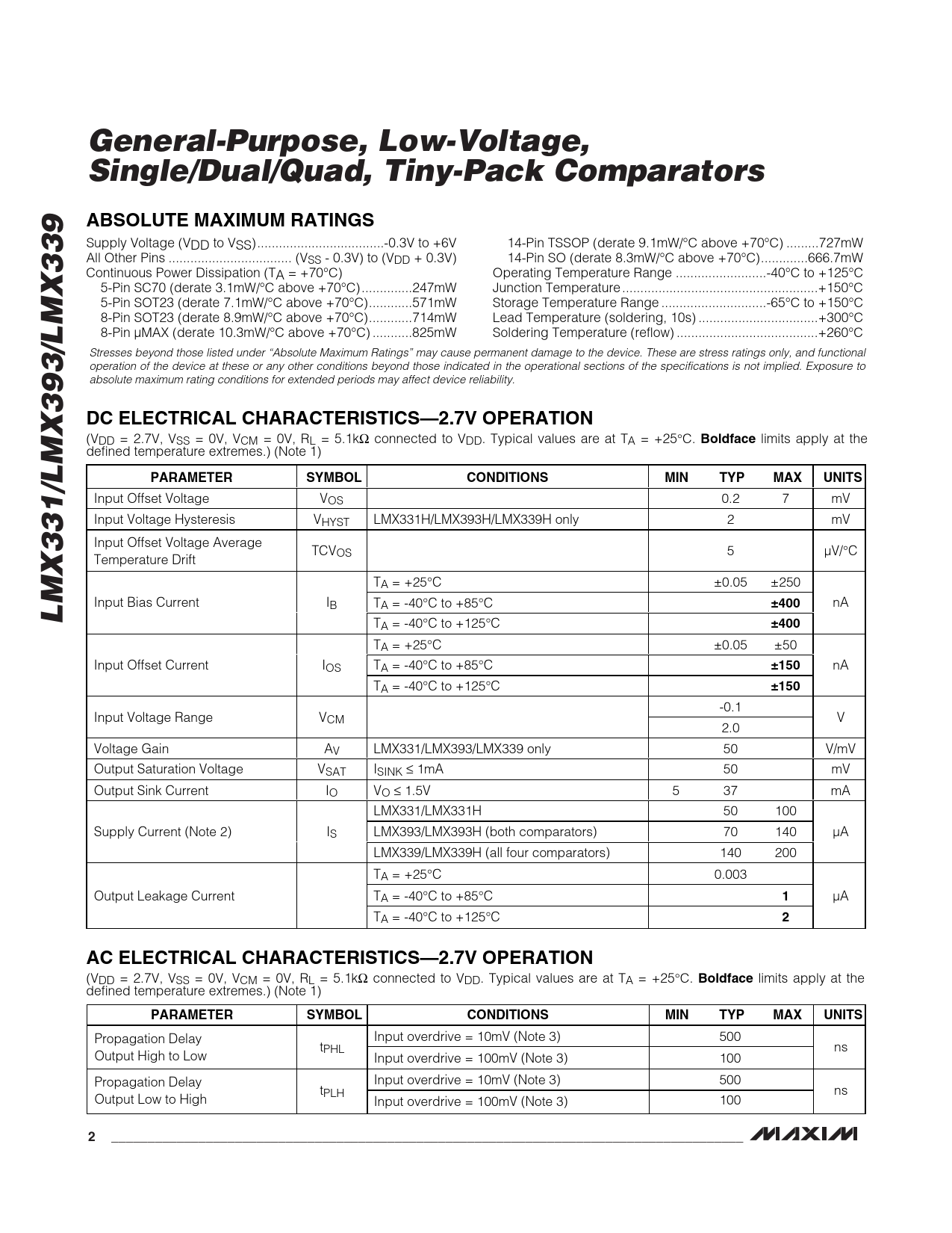 Datasheet LMX331, LMX393, LMX339 (Maxim) - 2