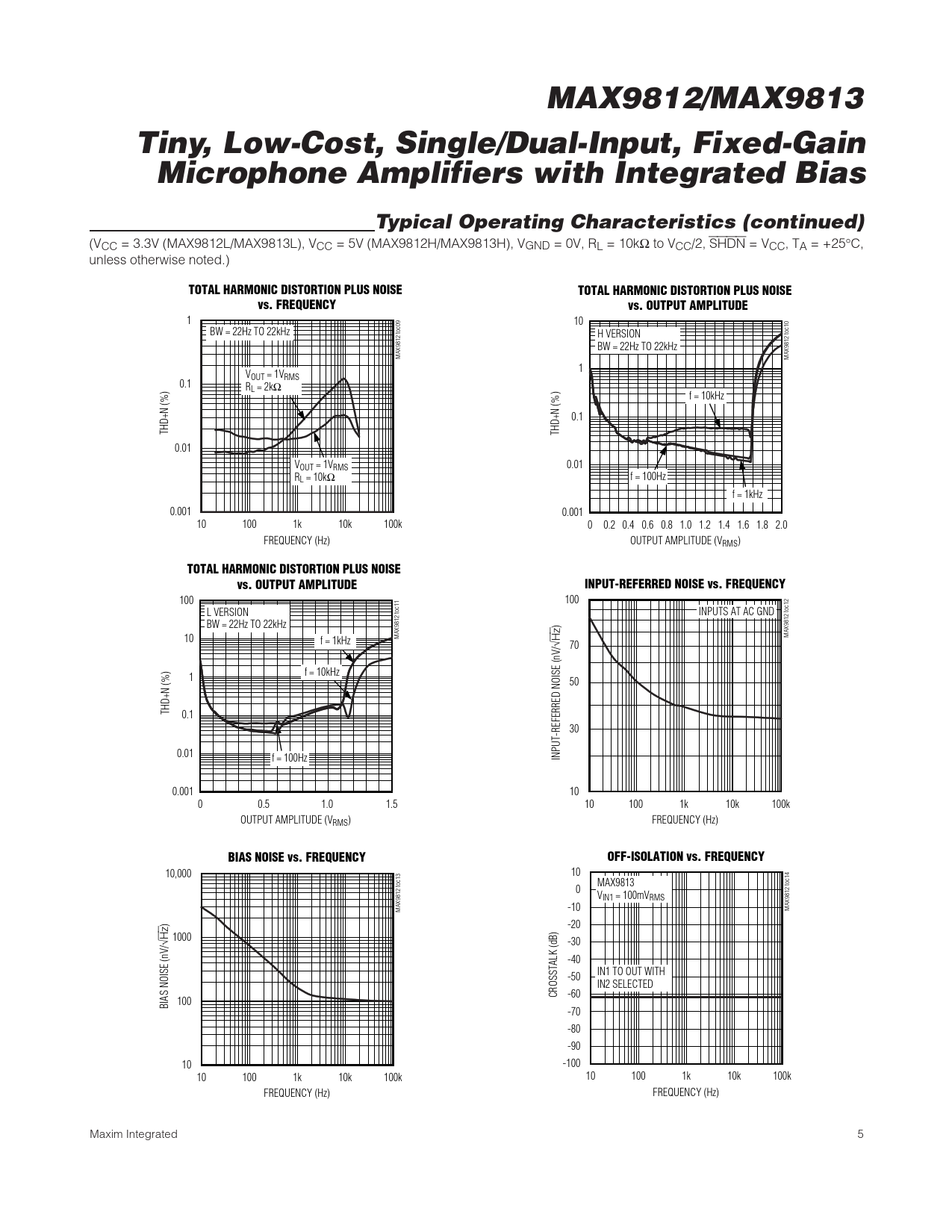 MAX9812/MAX9813 Tiny, Low-Cost, Single/Dual-Input, Fixed-Gain Microphone Amplifiers with Integrated Bias Typical Operating Characteristics (continued)