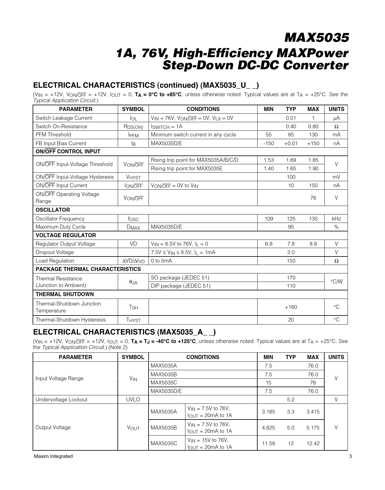 1A, 76V, High-Efficiency MAXPower. Step-Down DC-DC Converter. ELECTRICAL CHARACTERISTICS (continued) (MAX5035_U_ _)