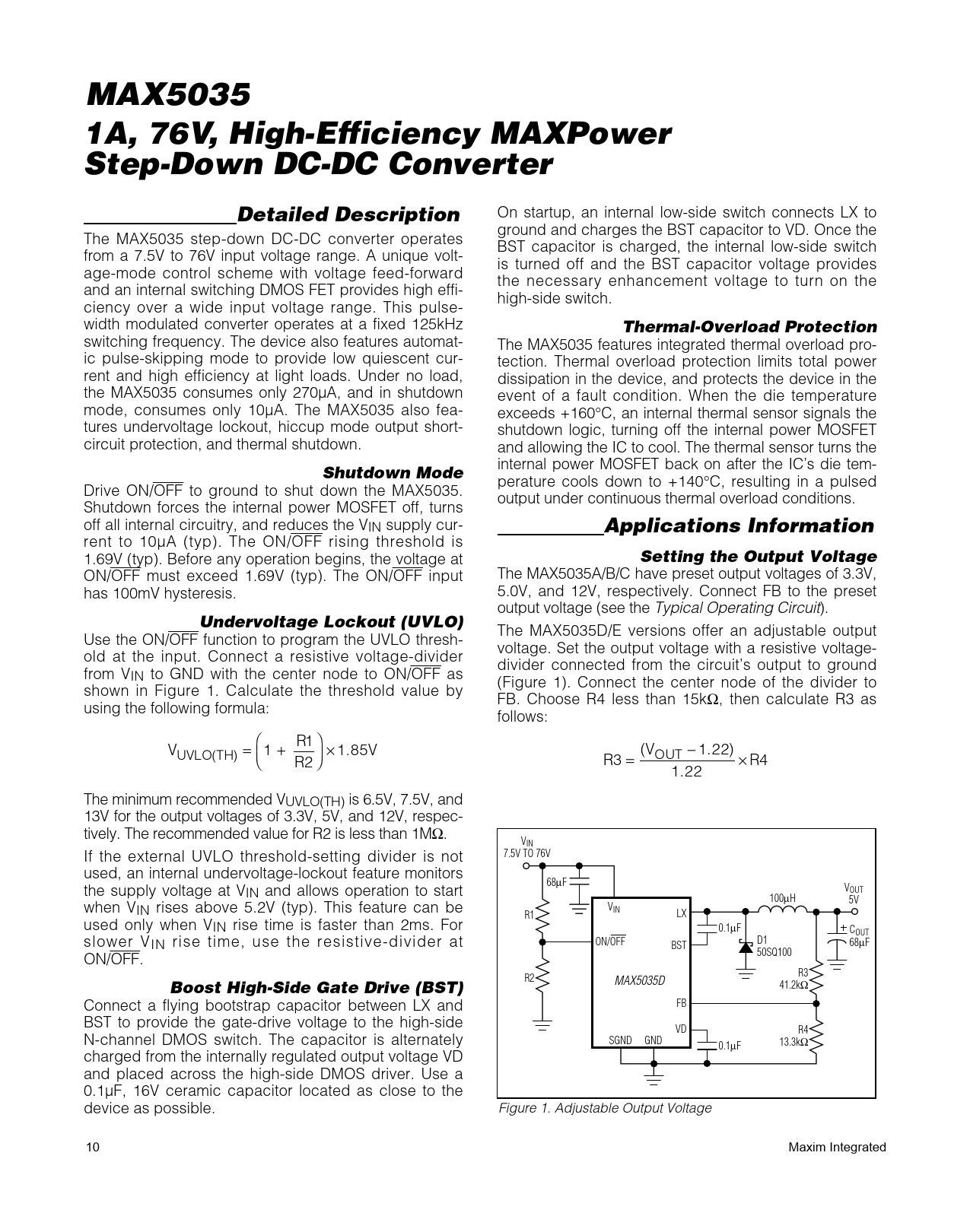 1A, 76V, High-Efficiency MAXPower Step-Down DC-DC Converter. Detailed Description. Thermal-Overload Protection. Shutdown Mode