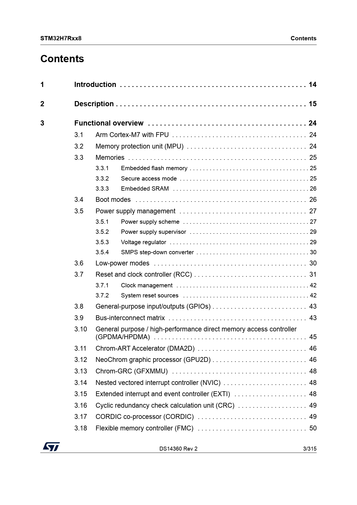 | Pages / Page | 315 / 3 — STM32H7Rxx8 Contents Contents. 1 Introduction . 14 2 Description 15 3 … |