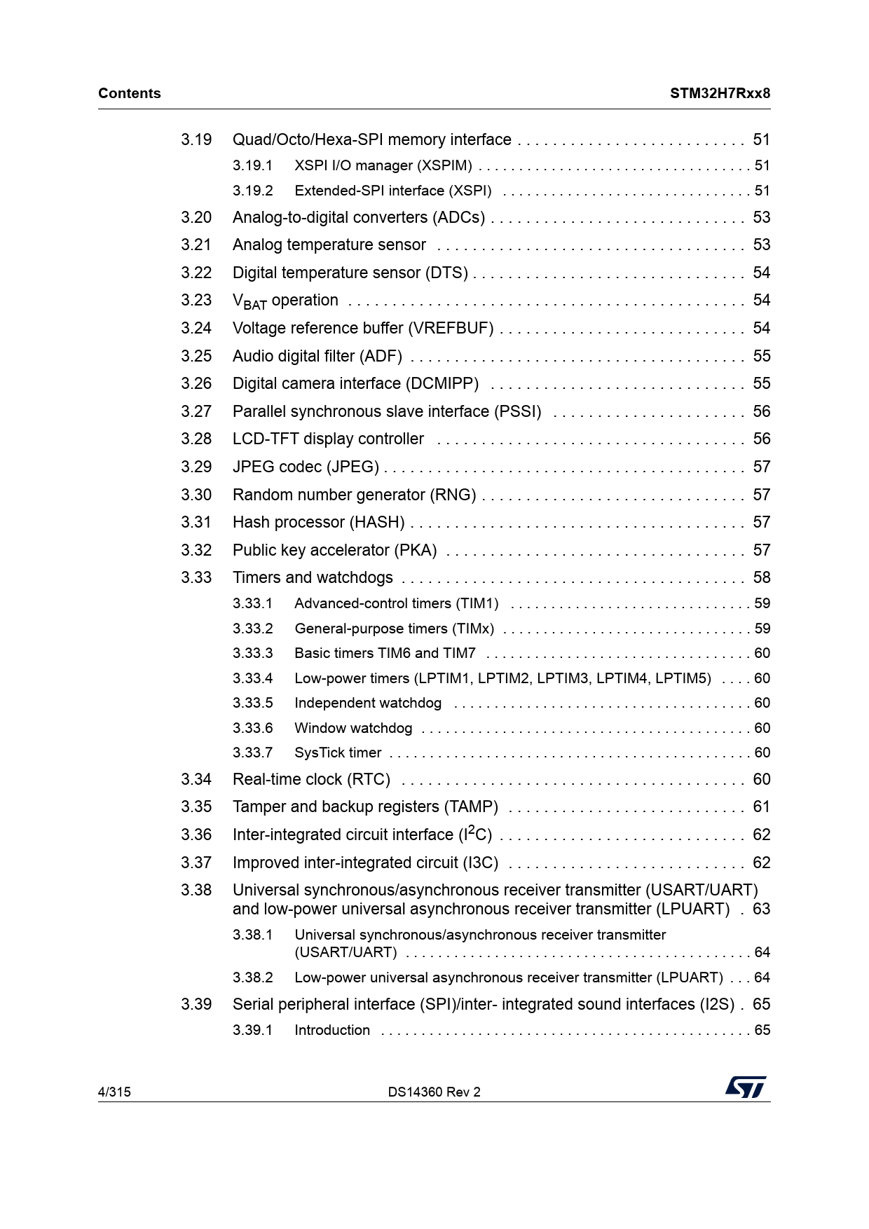 | Pages / Page | 315 / 4 — Contents. STM32H7Rxx8 |