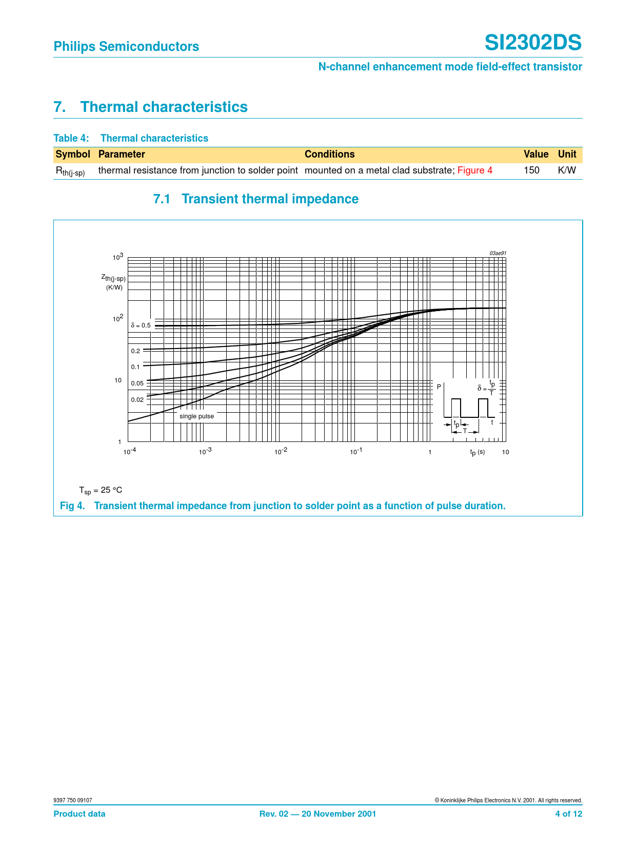 Philips Semiconductors. SI2302DS. N-channel enhancement mode field-effect transistor. Thermal characteristics. Table 4:
