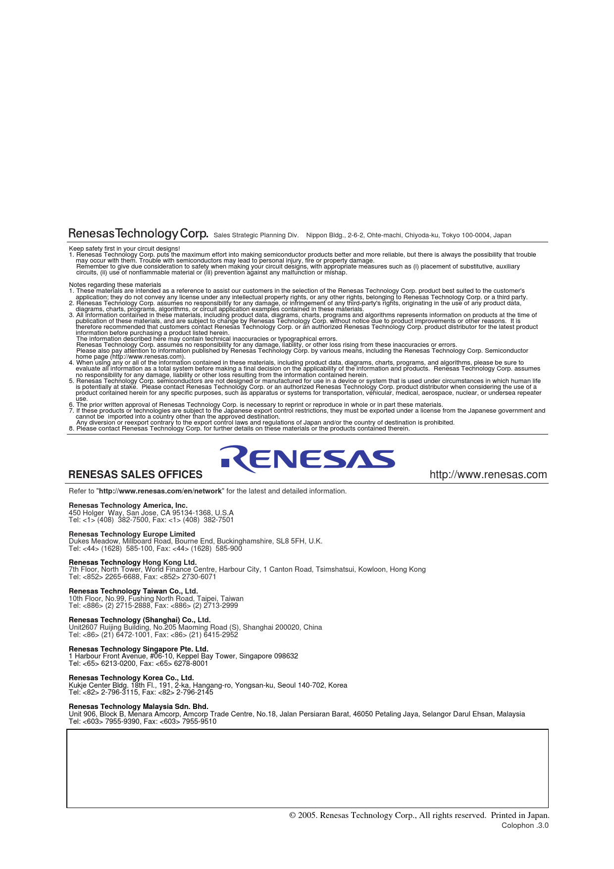 Tel: 7955-9390, Fax: 7955-9510 © 2005. Renesas Technology Corp., All rights reserved. Printed in Japan.