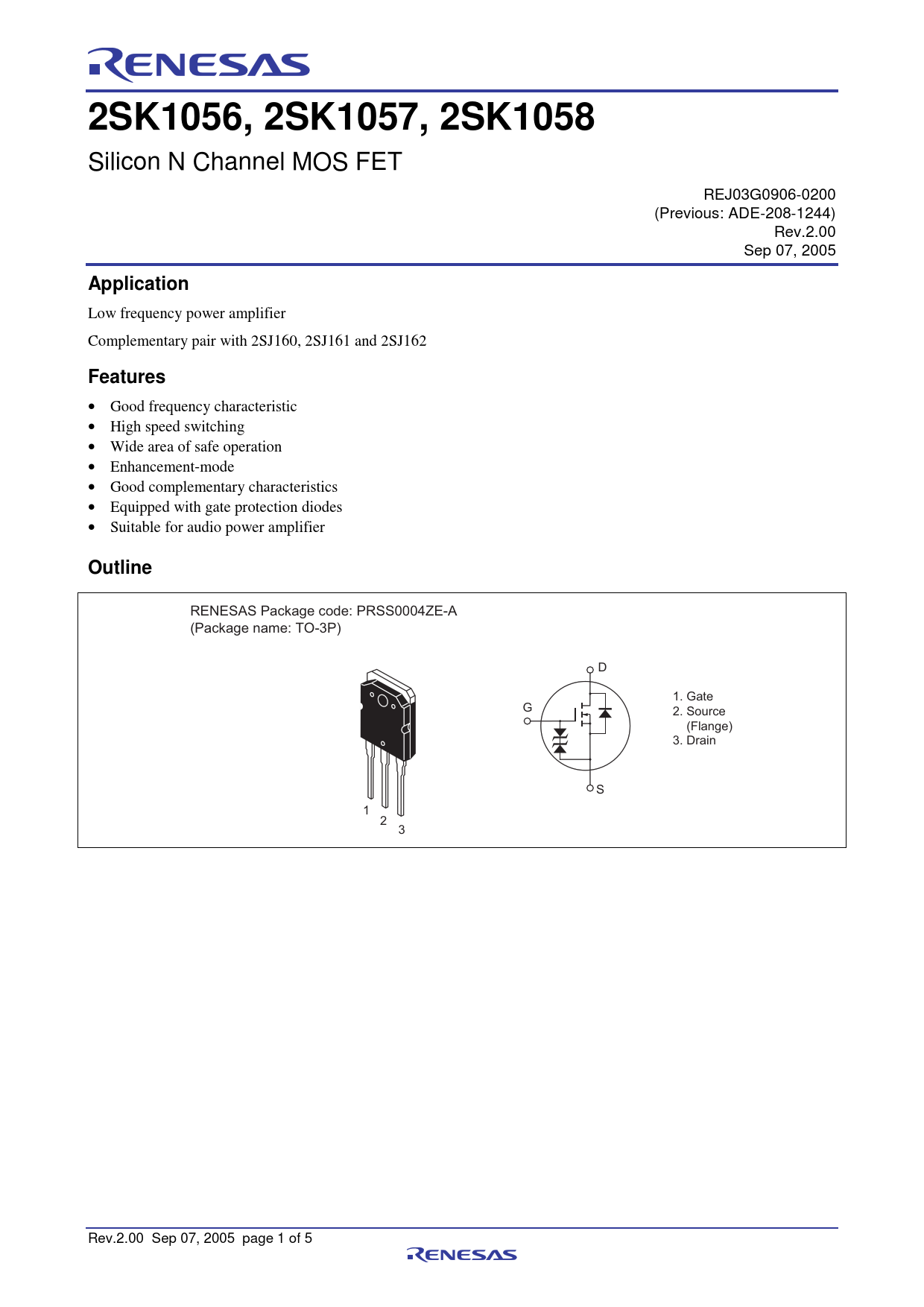 2SK1056, 2SK1057, 2SK1058. Silicon N Channel MOS FET. REJ03G0906-0200. (Previous: ADE-208-1244). Rev.2.00