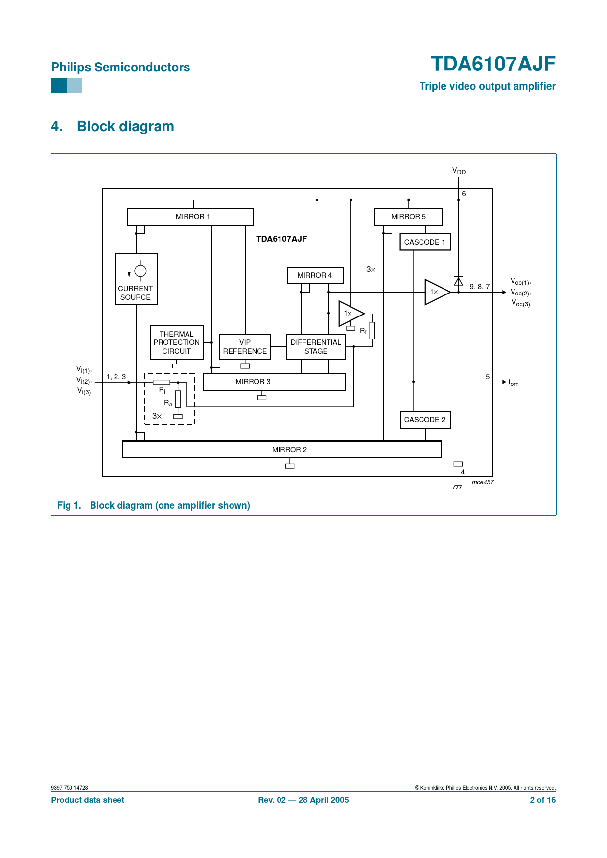| Pages / Page | 16 / 2 — Philips Semiconductors. TDA6107AJF. Triple video output amplifier. Block … |