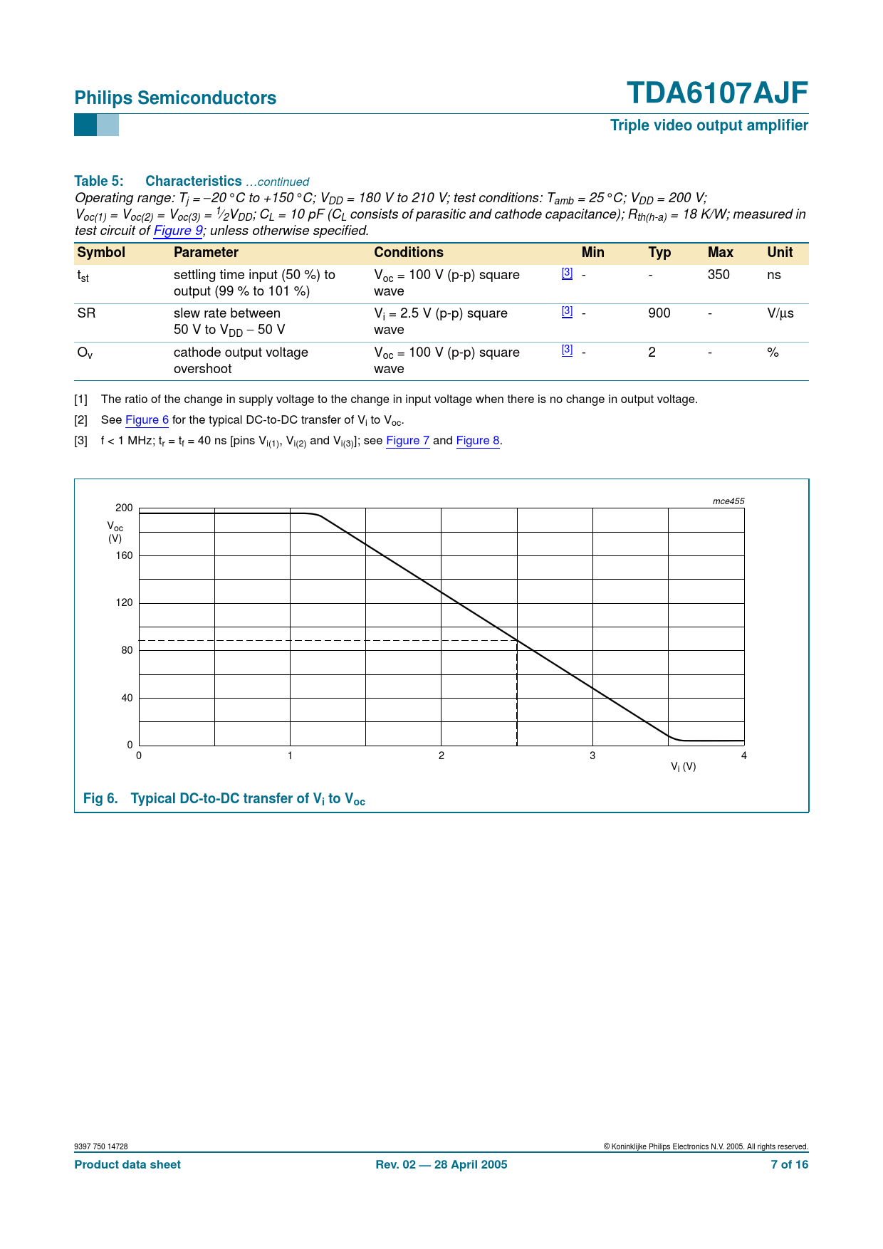 Philips Semiconductors. TDA6107AJF. Triple video output amplifier. Table 5:. Characteristics. Symbol. Parameter. Conditions. Min. Typ. Max