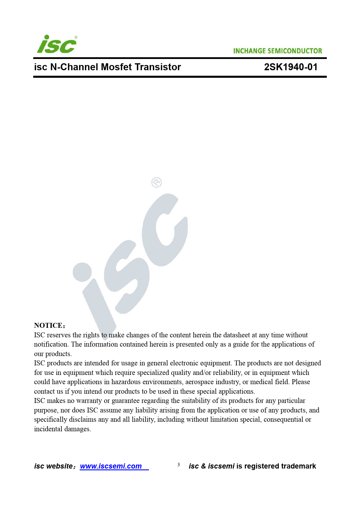 Pages / Page3 / 3 — isc N-Channel Mosfet Transistor. 2SK1940-01. NOTICE. isc website. …