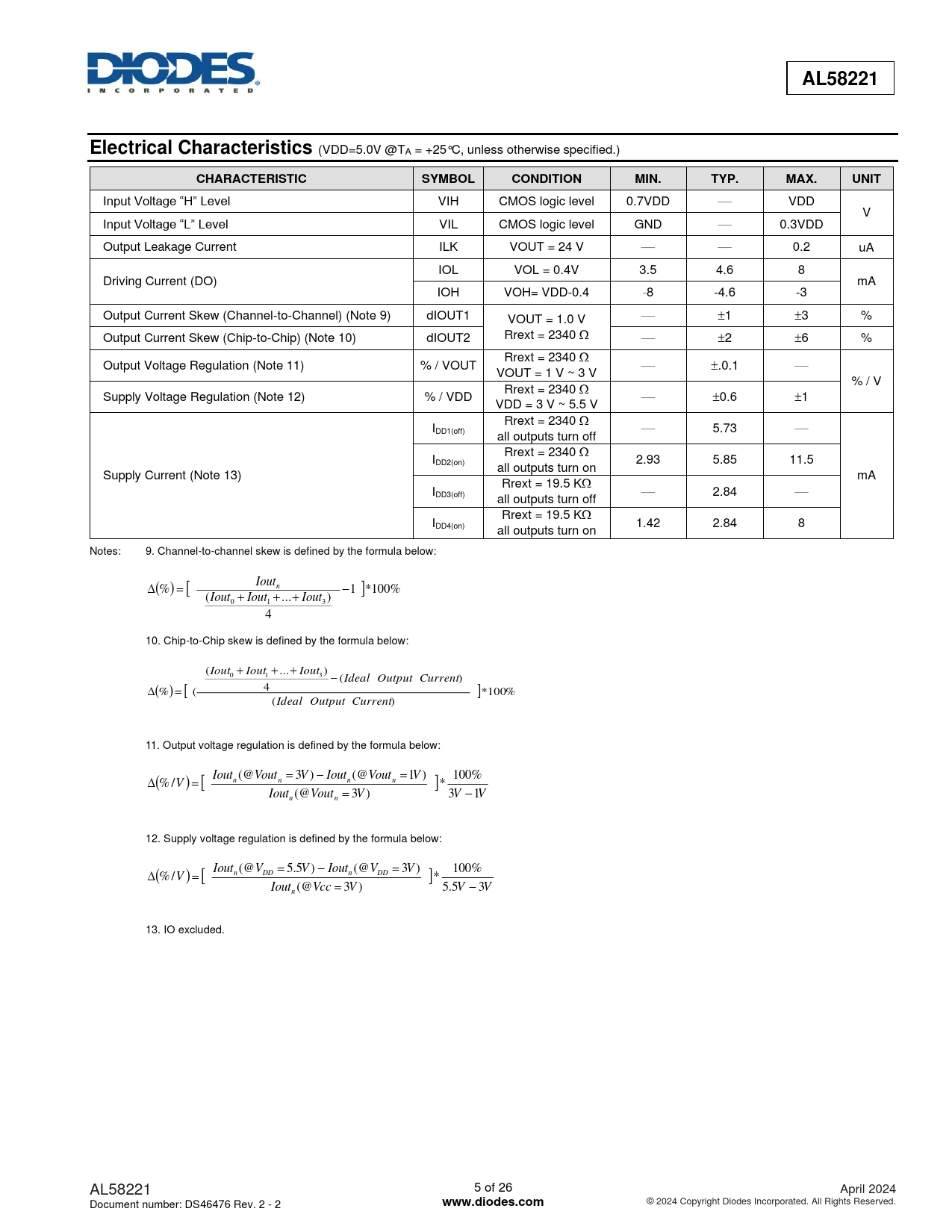 AL58221. Electrical Characteristics. CHARACTERISTIC. SYMBOL. CONDITION. MIN. TYP. MAX. UNIT. www.diodes.com