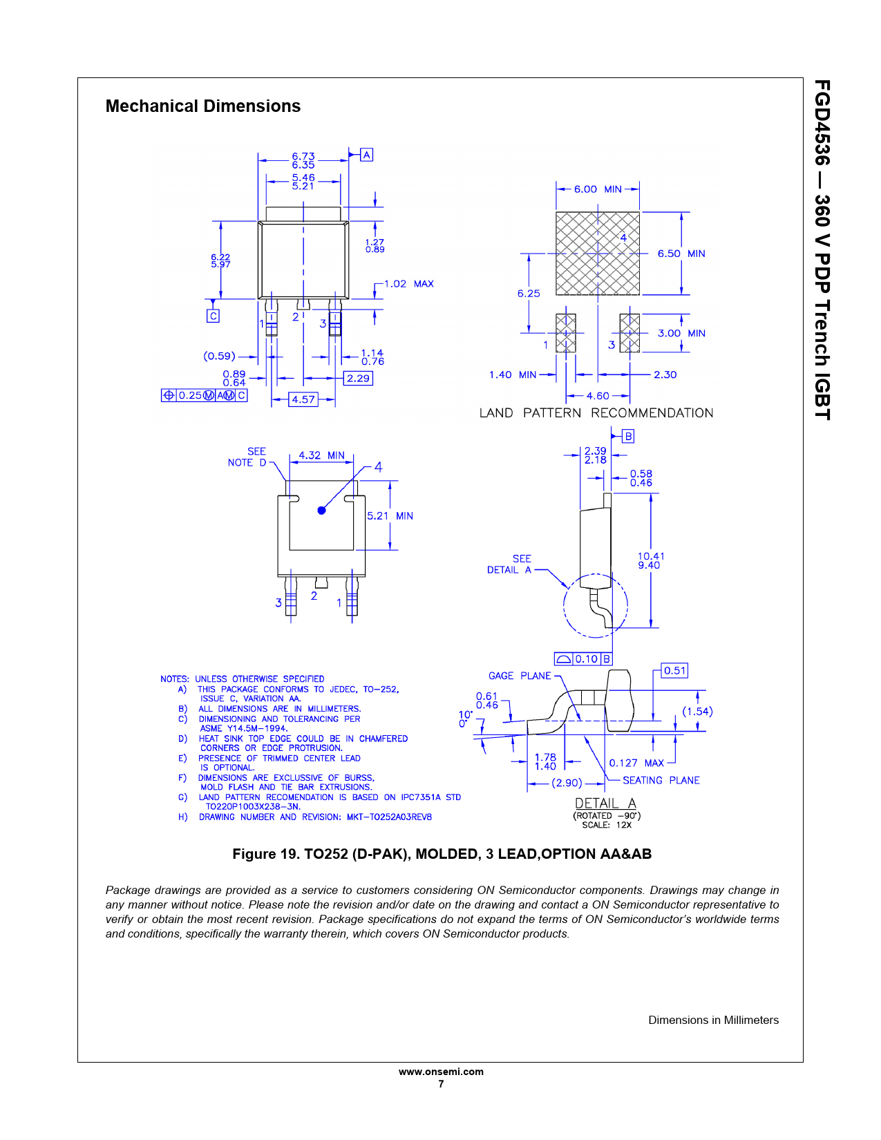FGD4536. Mechanical Dimensions. — 360 V PDP Trench IGBT. Figure 19. TO252 (D-PAK), MOLDED, 3 LEAD,OPTION AA&AB