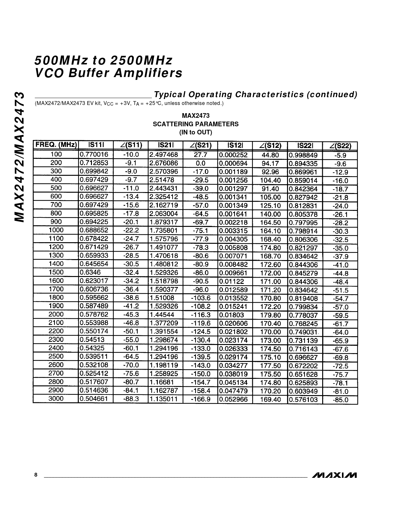 500MHz to 2500MHz VCO Buffer Amplifiers. Typical Operating Characteristics (continued). MAX2473. SCATTERING PARAMETERS