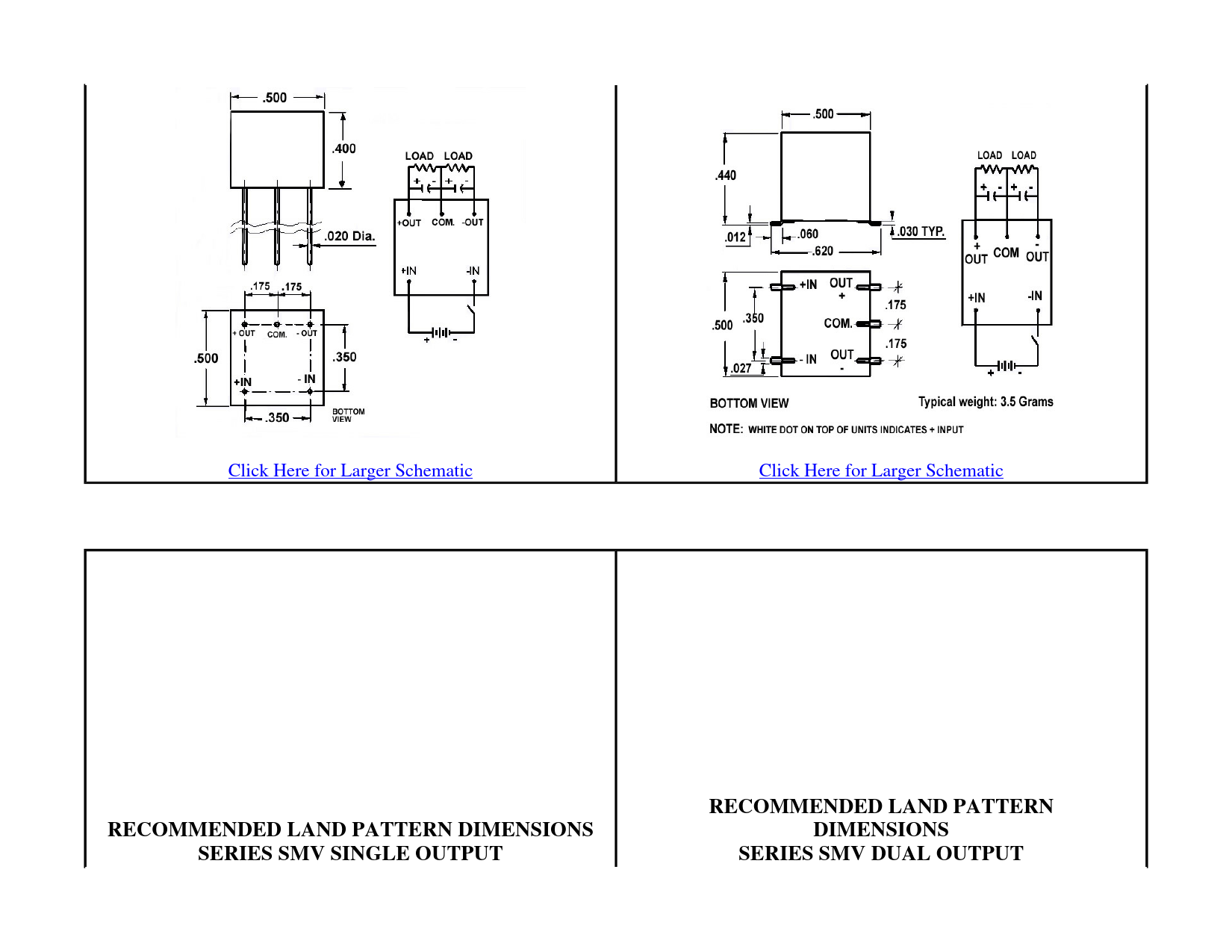RECOMMENDED LAND PATTERN. RECOMMENDED LAND PATTERN DIMENSIONS. DIMENSIONS. SERIES SMV SINGLE OUTPUT. SERIES SMV DUAL OUTPUT