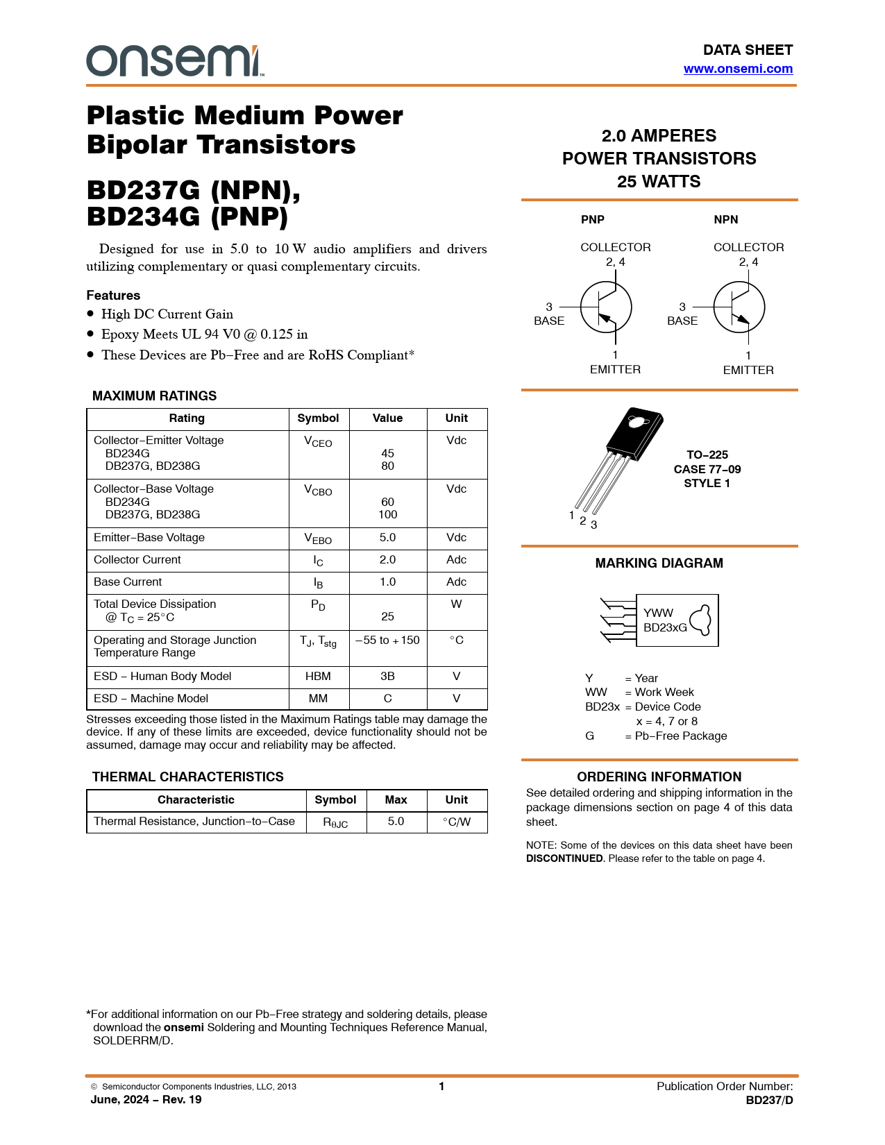 Datasheet BD234G, BD237G (ON Semiconductor)