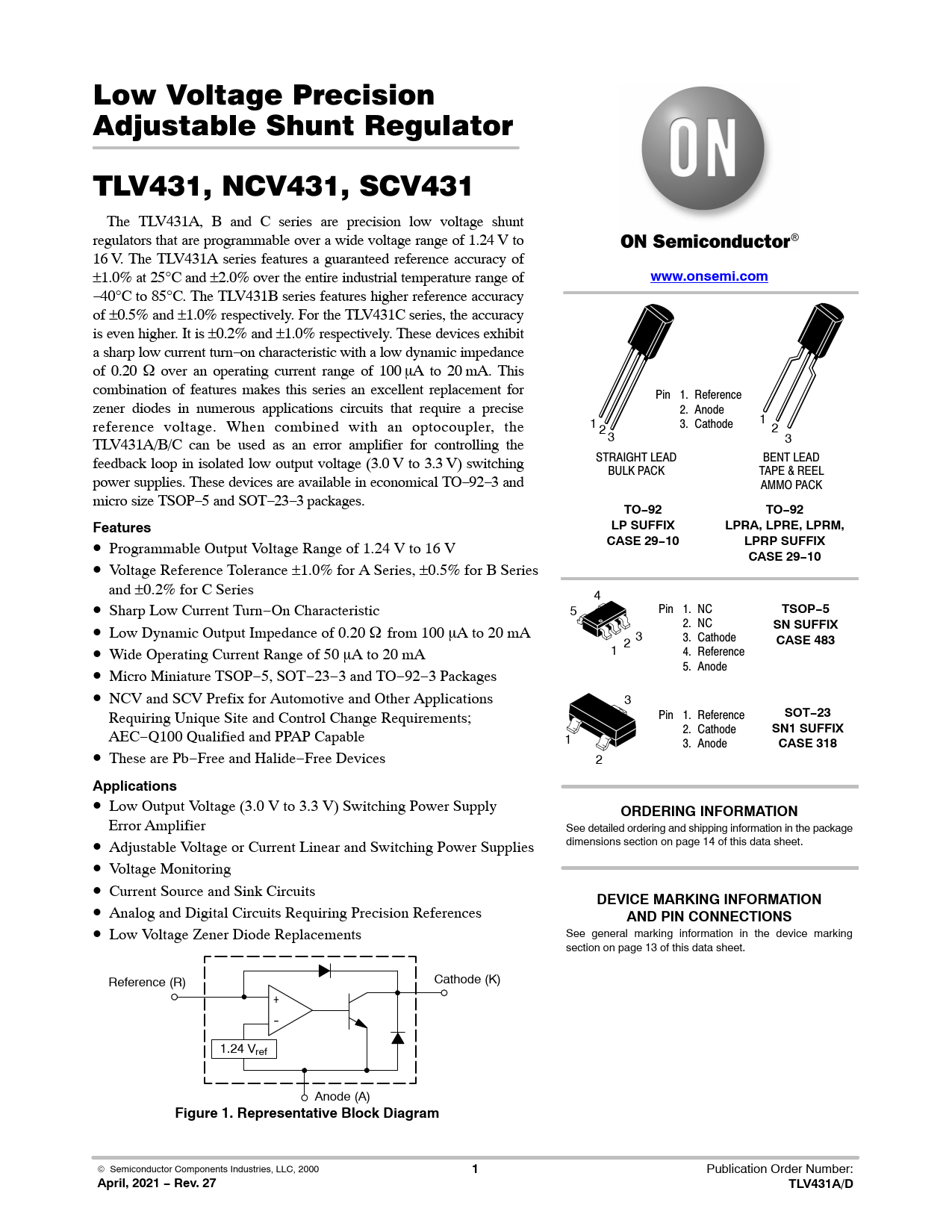 Datasheet TLV431, NCV431, SCV431 (ON Semiconductor)