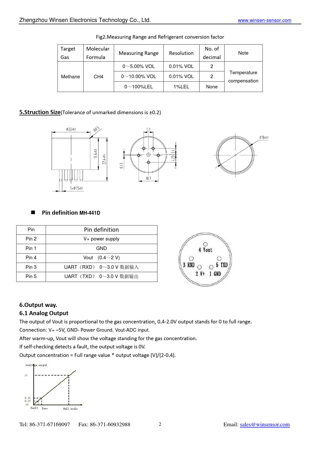 5.Struction Size. Pin definition MH-441D. 6.Output way. 6.1 Analog Output