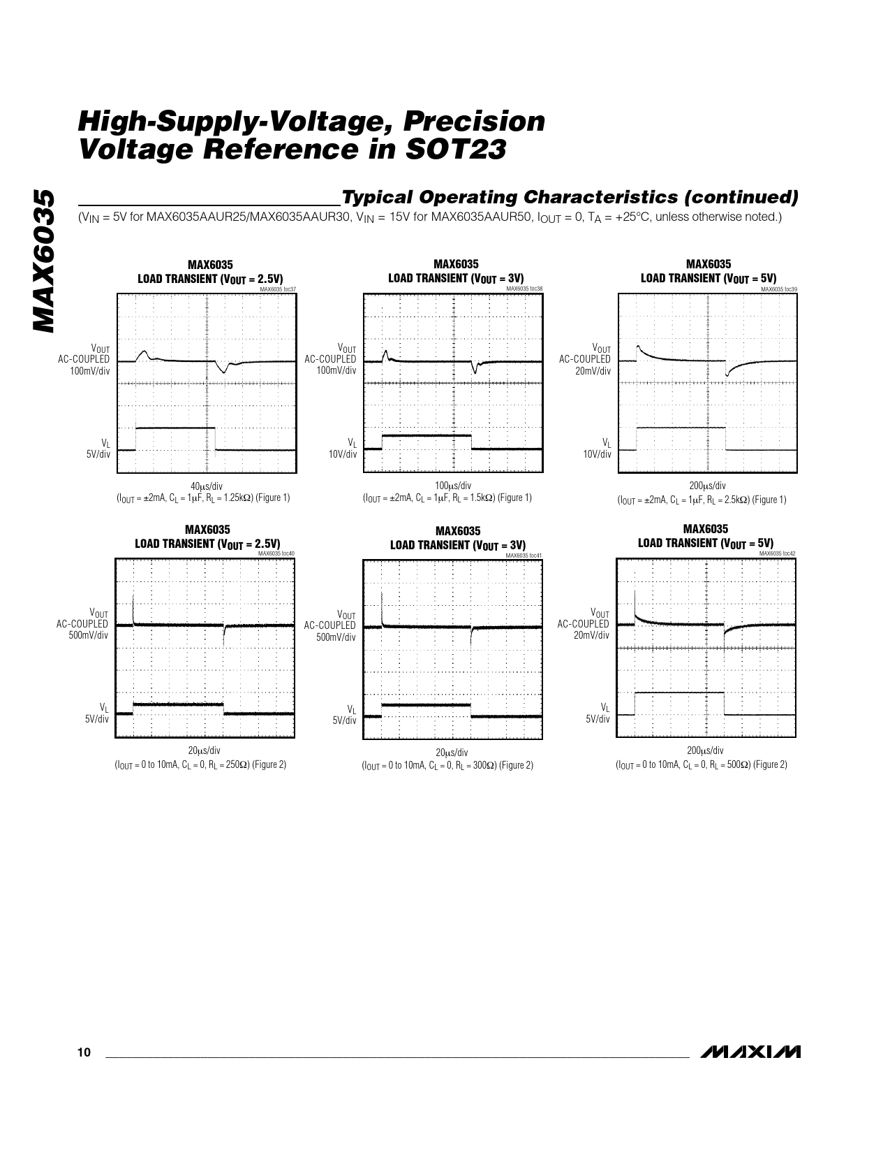 MAX6035 MAX6035 MAX6035 LOAD TRANSIENT (VOUT = 2.5V) LOAD TRANSIENT (VOUT = 3V) LOAD TRANSIENT (VOUT = 5V)
